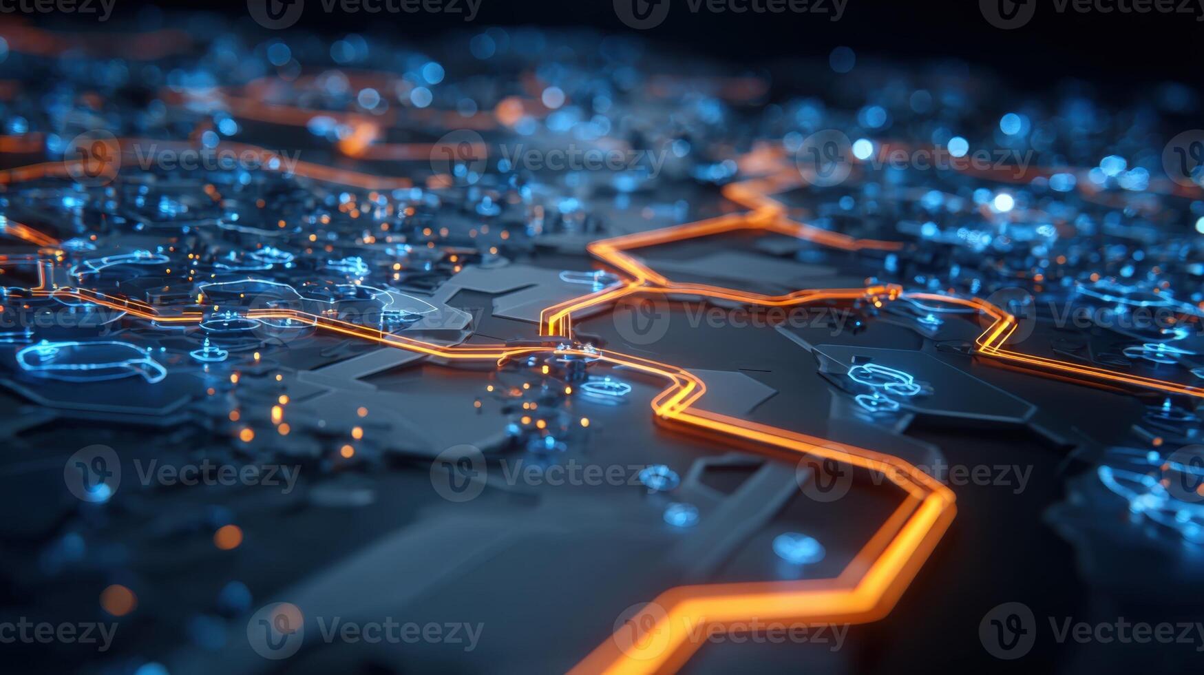 Abstract Technology Background with Glowing Circuits and Data Flow, Artificial Intelligence and Neural Network Connectivity Pro Photo