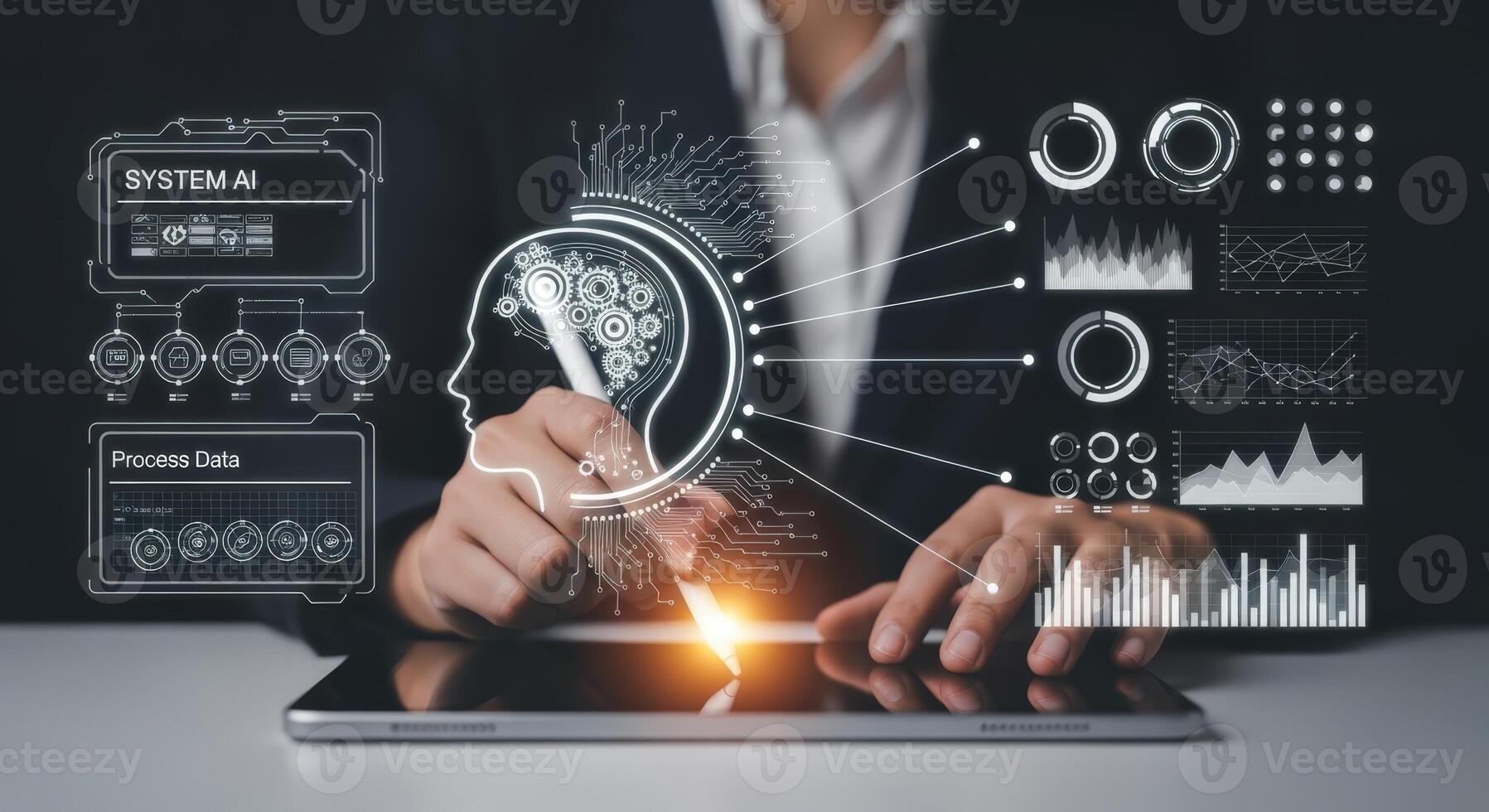 AI Interface Design with Data Visualization and Human Interaction on Tablet Display for Business Solutions Pro Photo
