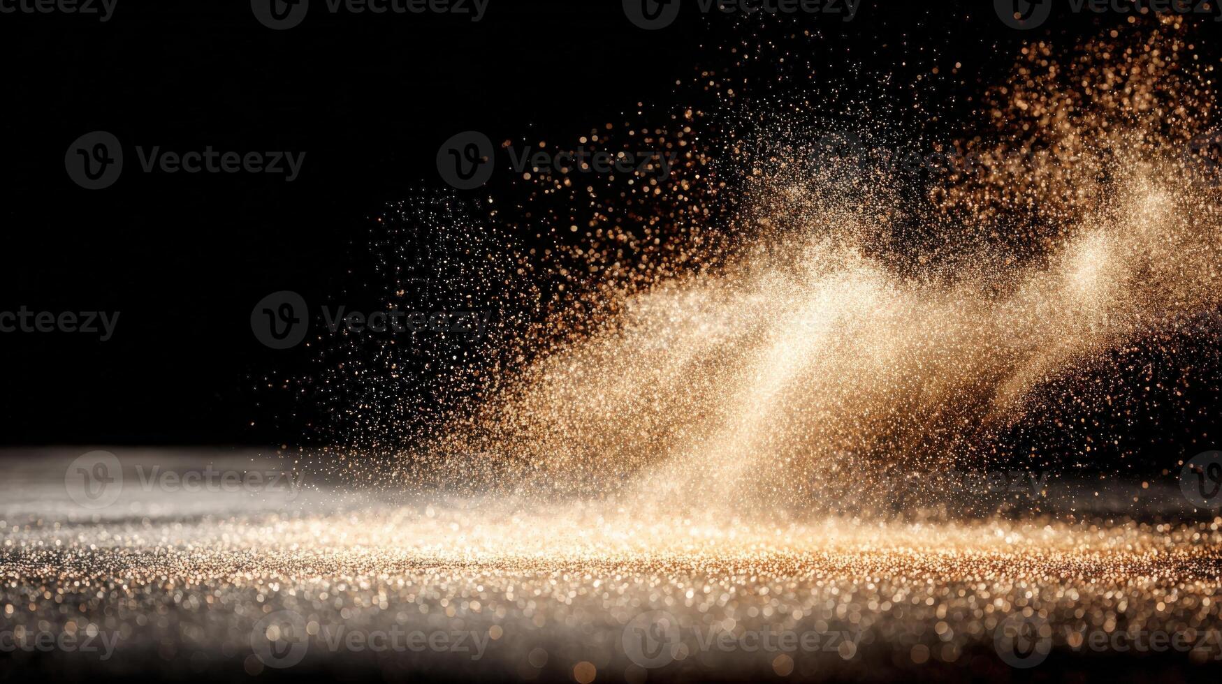 Golden Dust Explosion on a Black Background, Abstract Particle Wave Motion with Ethereal Feel Pro Photo