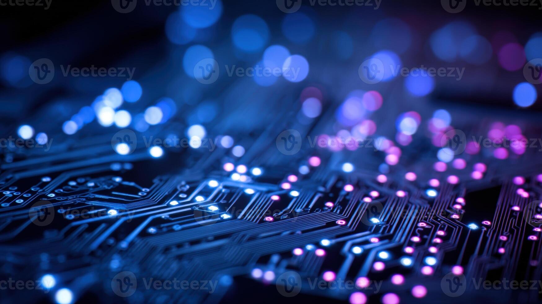 Abstract High-Tech Circuit Board Background with Glowing Nodes and Connections for Digital Innovation Pro Photo