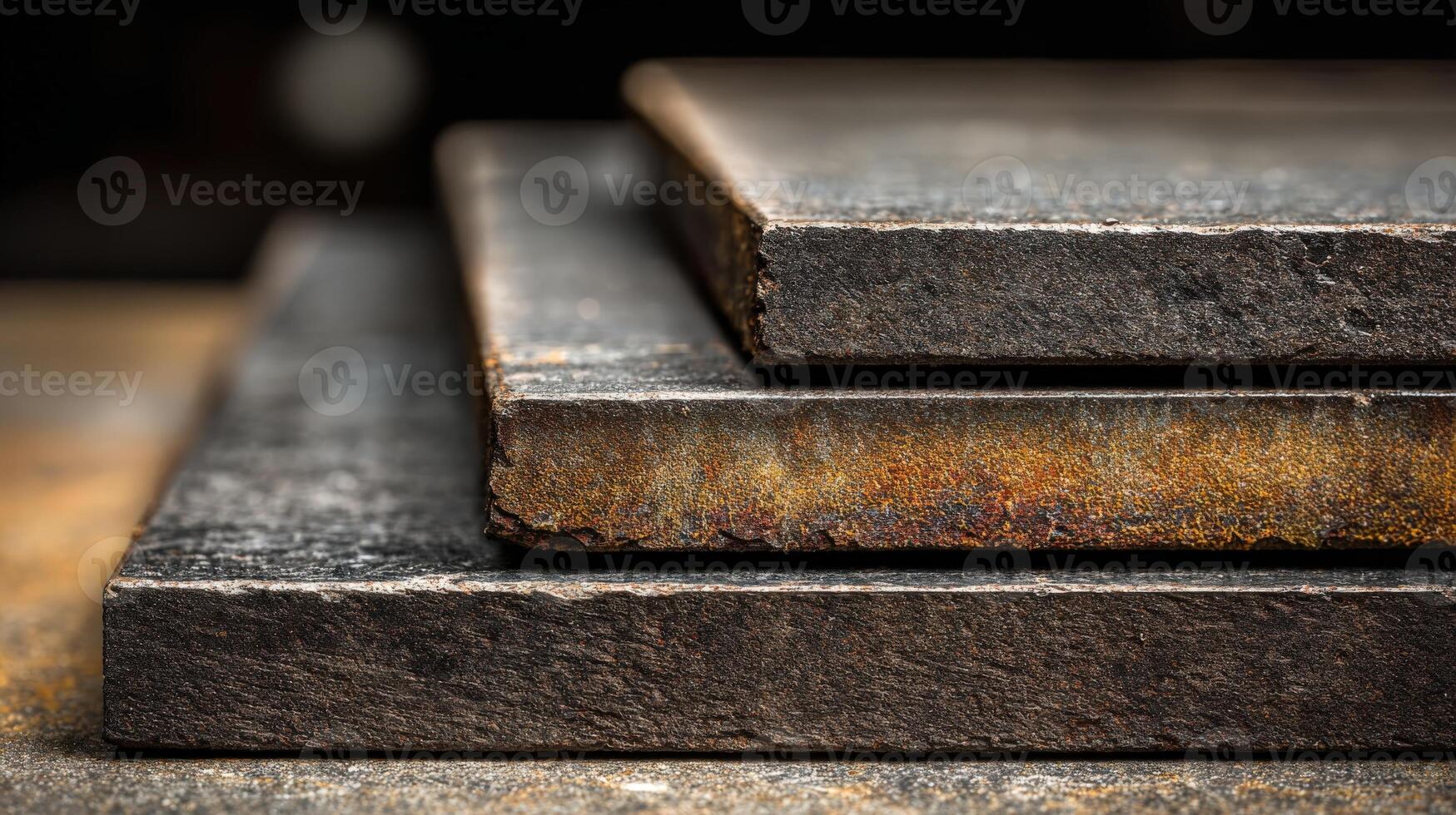 Stack of Rectangular Metal Plates with Aged and Weathered Textures for Industrial Applications and Design Pro Photo