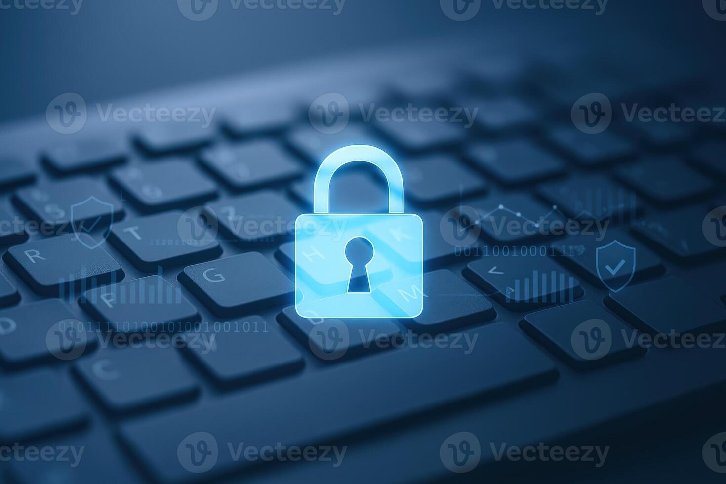 Secure Computer Keyboard with Glowing Padlock Illustrating Cyber Security and Data Protection Concepts Pro Photo