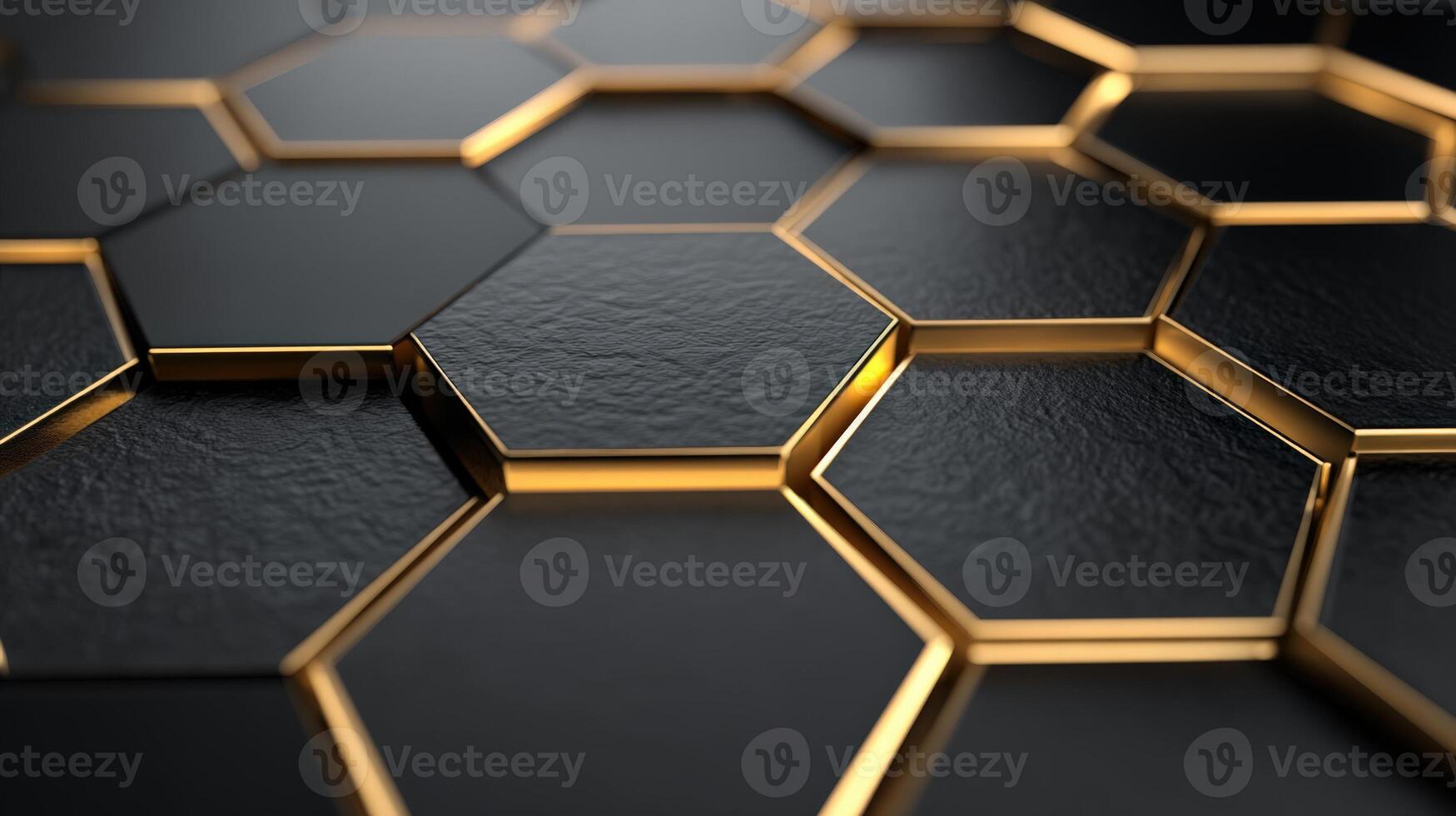 Abstract Hexagonal Background with Golden Edges, Modern Technology Design Concept, Reflective Surfaces, Geometric Pattern Pro Photo