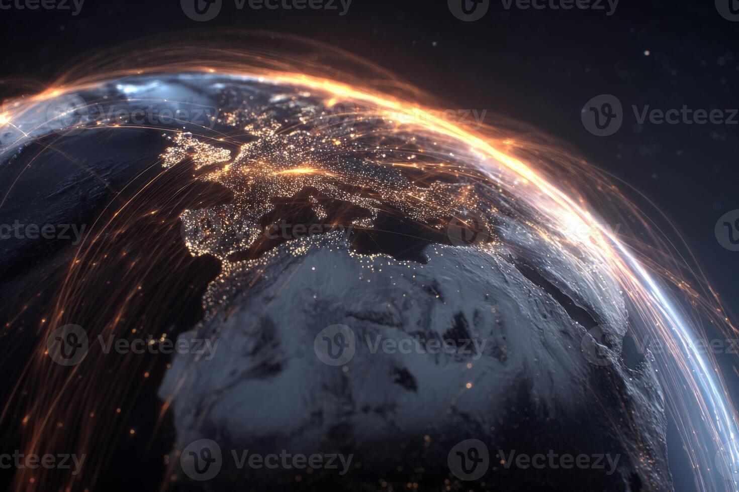 Global Connectivity Concept Earth View with Glowing Network Connections, Representing Data, Communication, and Technology Pro Photo