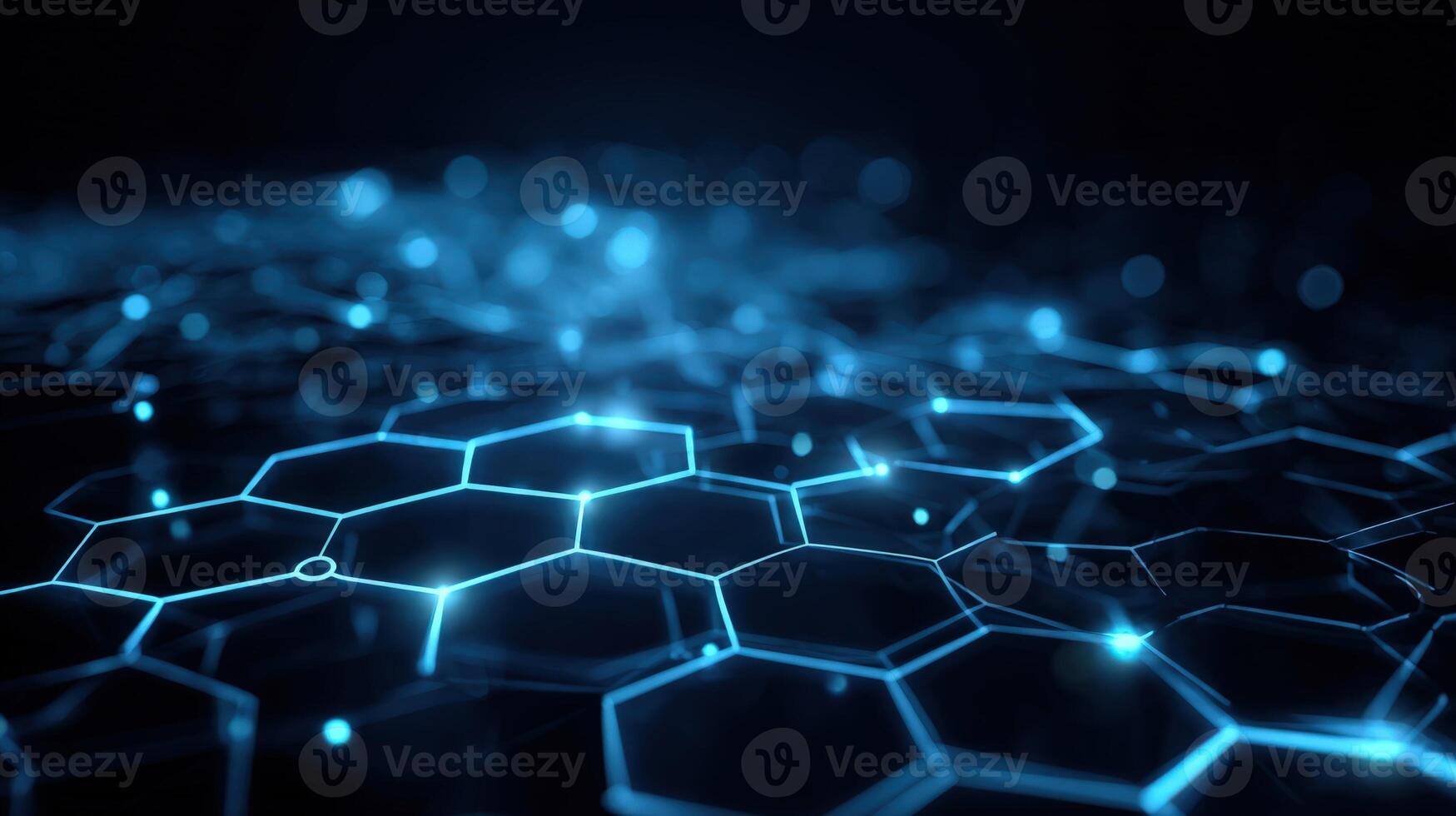 Futuristic Hexagonal Grid Background with Glowing Blue Light Accents for Technology and Science Visualization Pro Photo
