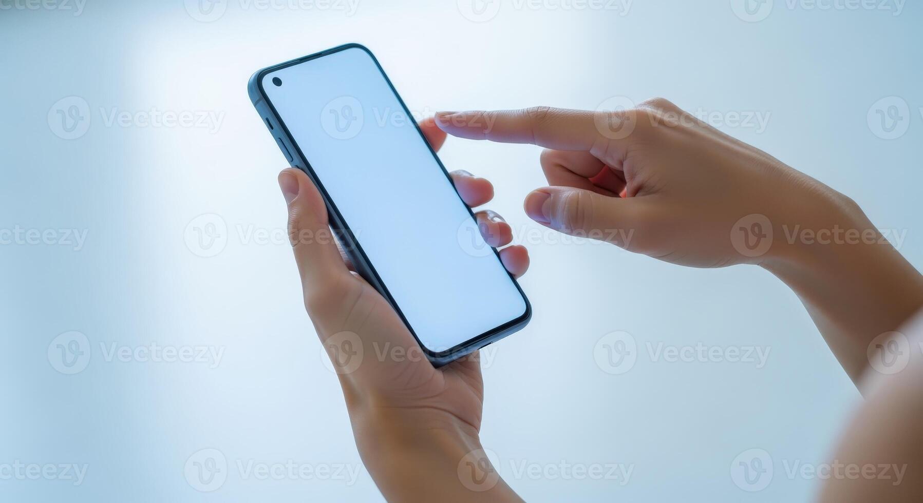 Hands Holding and Interacting with a Blank Screen Smartphone Device, Isolated on White, Representing Modern Technology Pro Photo