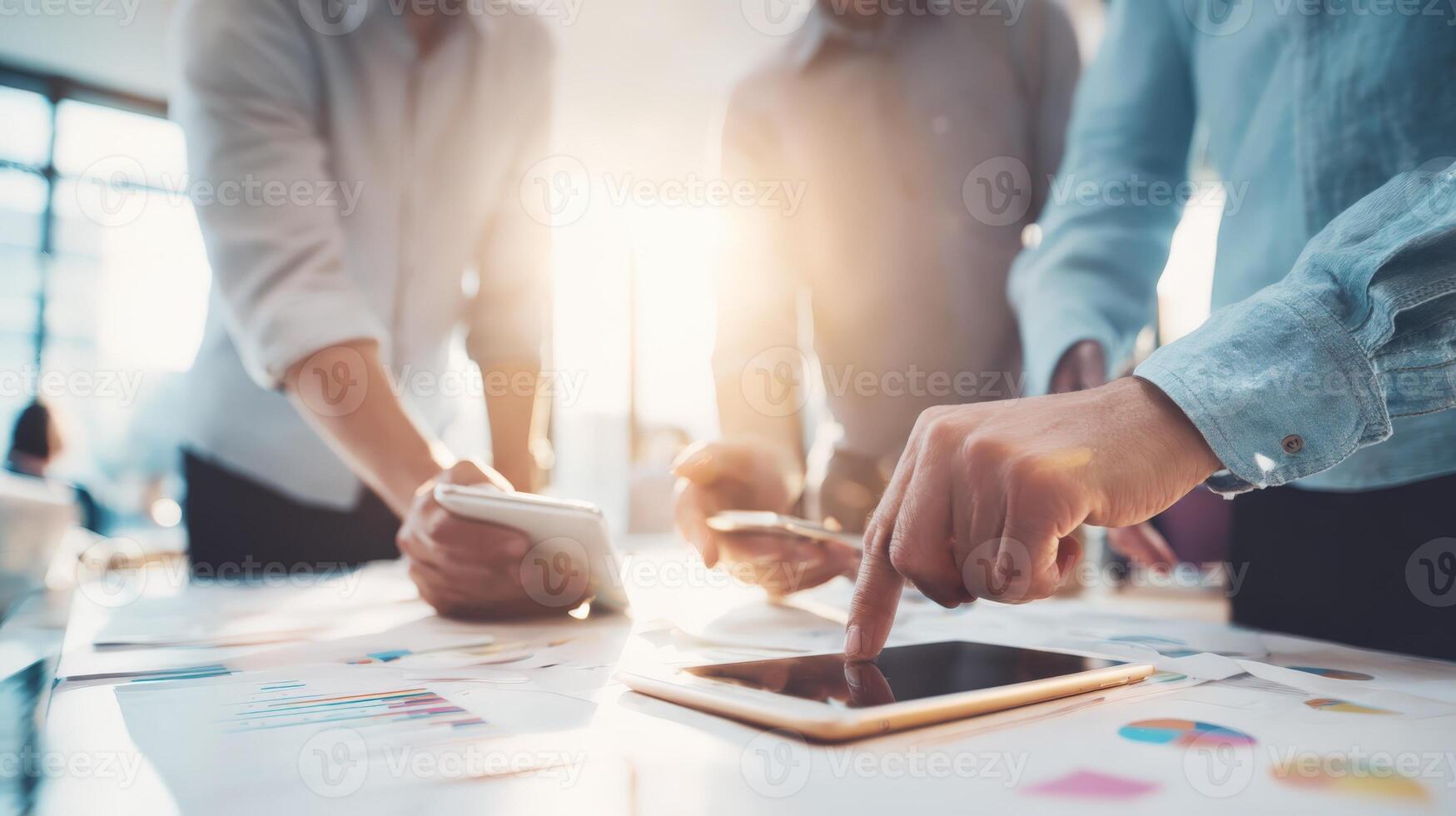 Business Team Collaboration on Project Strategy Using Digital Tablet and Data Charts, Brainstorming in Office Pro Photo