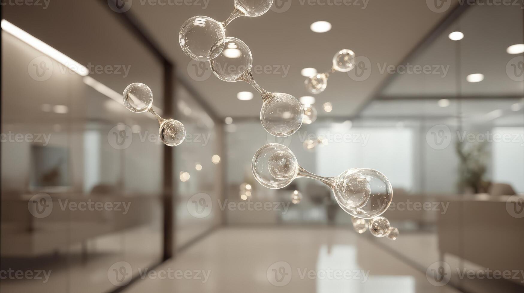 Abstract Molecular Structure Floating in Modern Office Space, Emphasizing Science and Technology Innovations Pro Photo