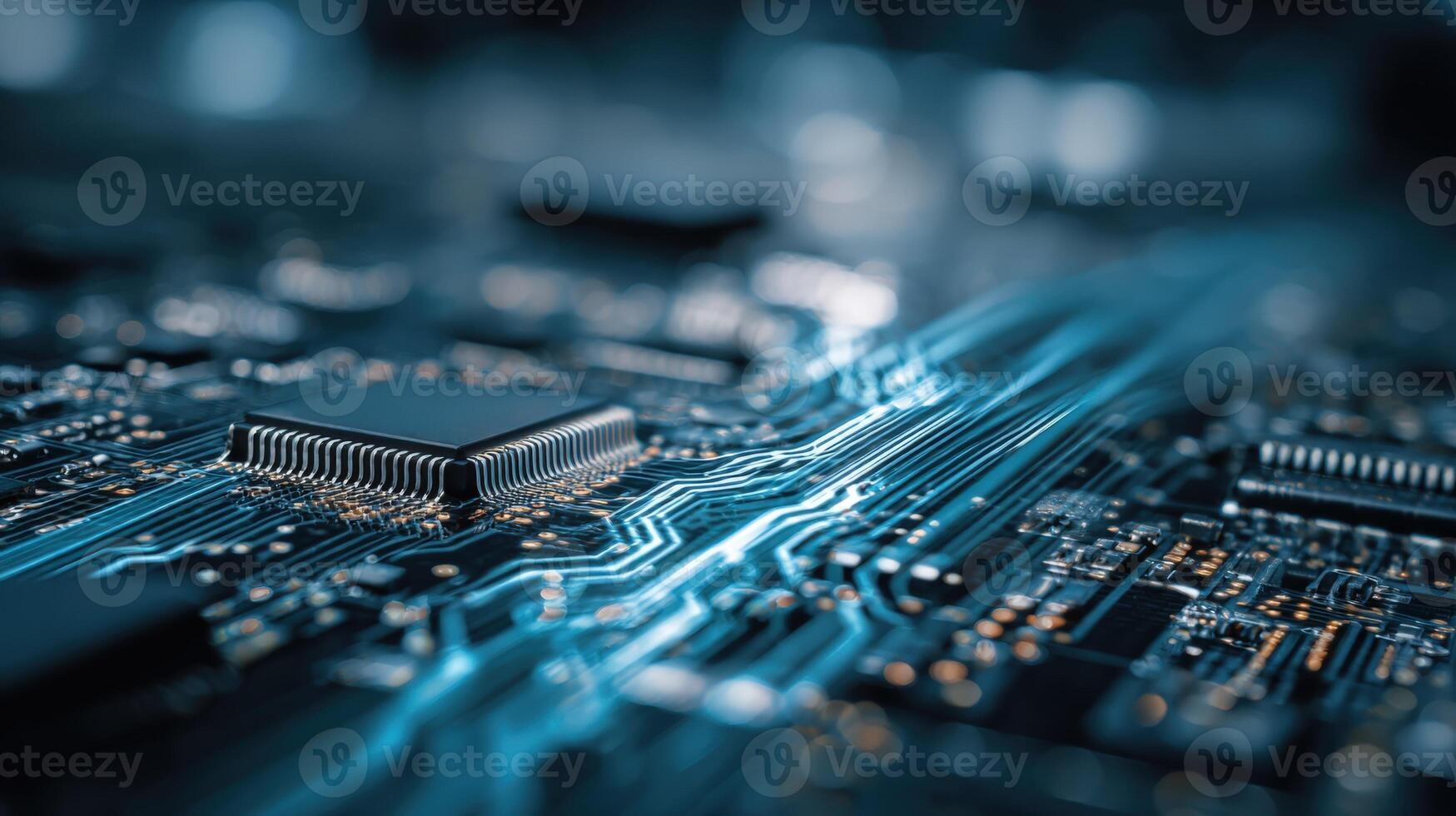 Electronic Circuit Board with Microchip Close-Up High-Tech Industry, Computing, and Innovation Pro Photo