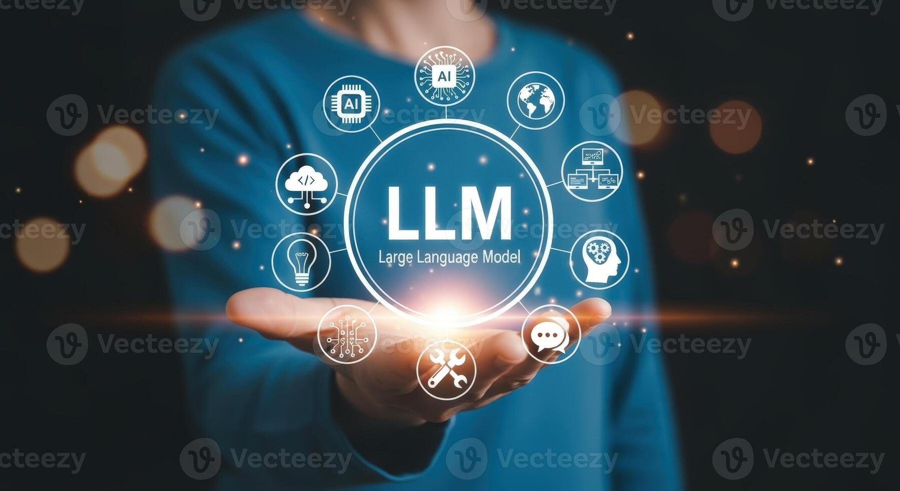 Artificial Intelligence Concept Hand Holding LLM Large Language Model Digital Technology Innovation Pro Photo