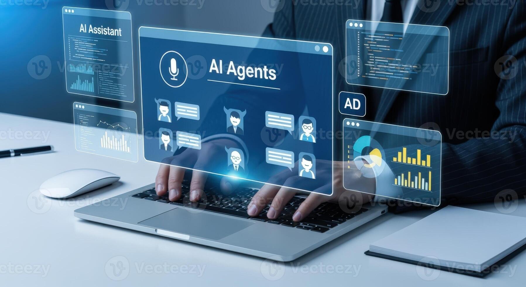 AI Agents and Virtual Assistants Business Professional Utilizing Artificial Intelligence Applications for Business Efficiency and Productivity Pro Photo