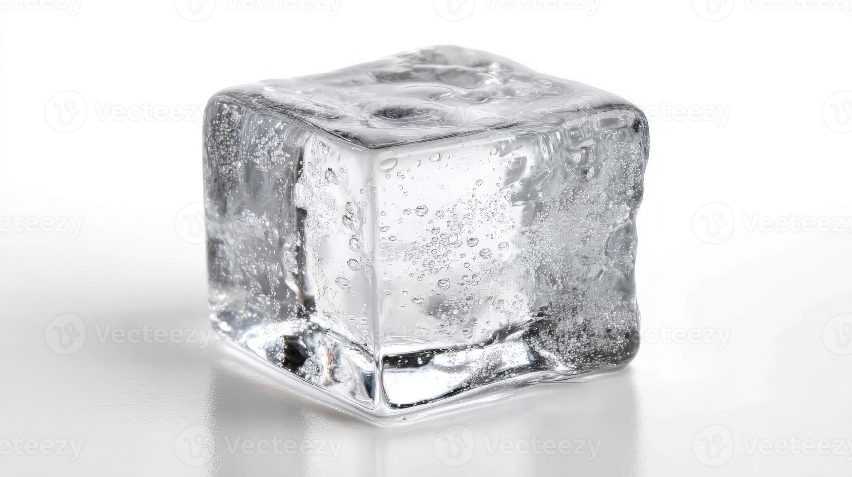 Macro Shot of Single Ice Cube with Reflections, Ideal for Food and Beverage Concepts Pro Photo