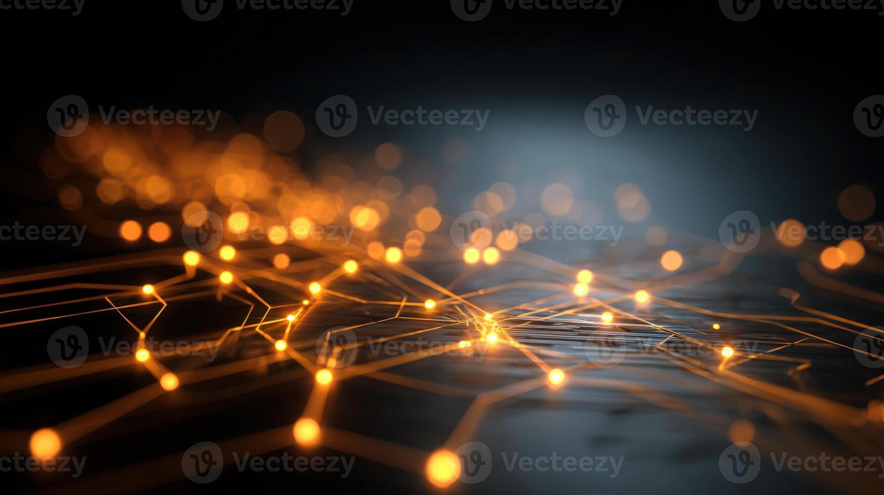 Abstract Glowing Network Interconnected Data Points Illuminating a Futuristic Technology Landscape for Digital Solutions Pro Photo