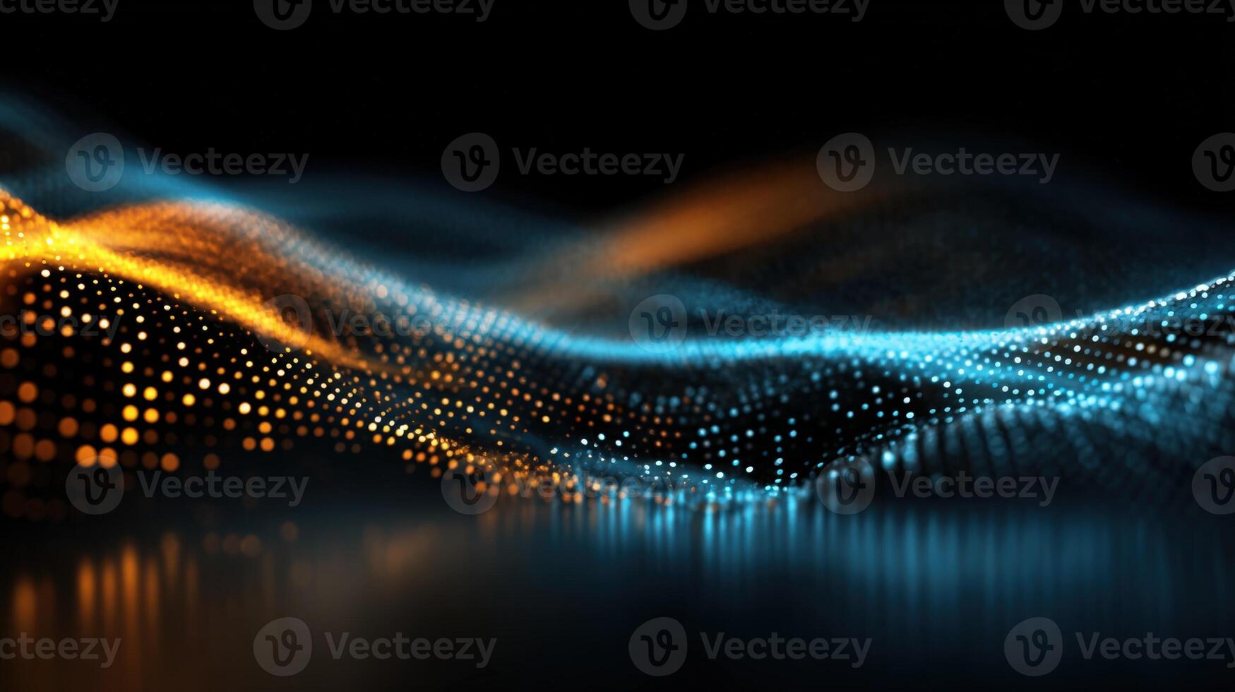 Abstract Data Stream Visualization with Blue and Orange Particles Flowing Over Dark Background Pro Photo