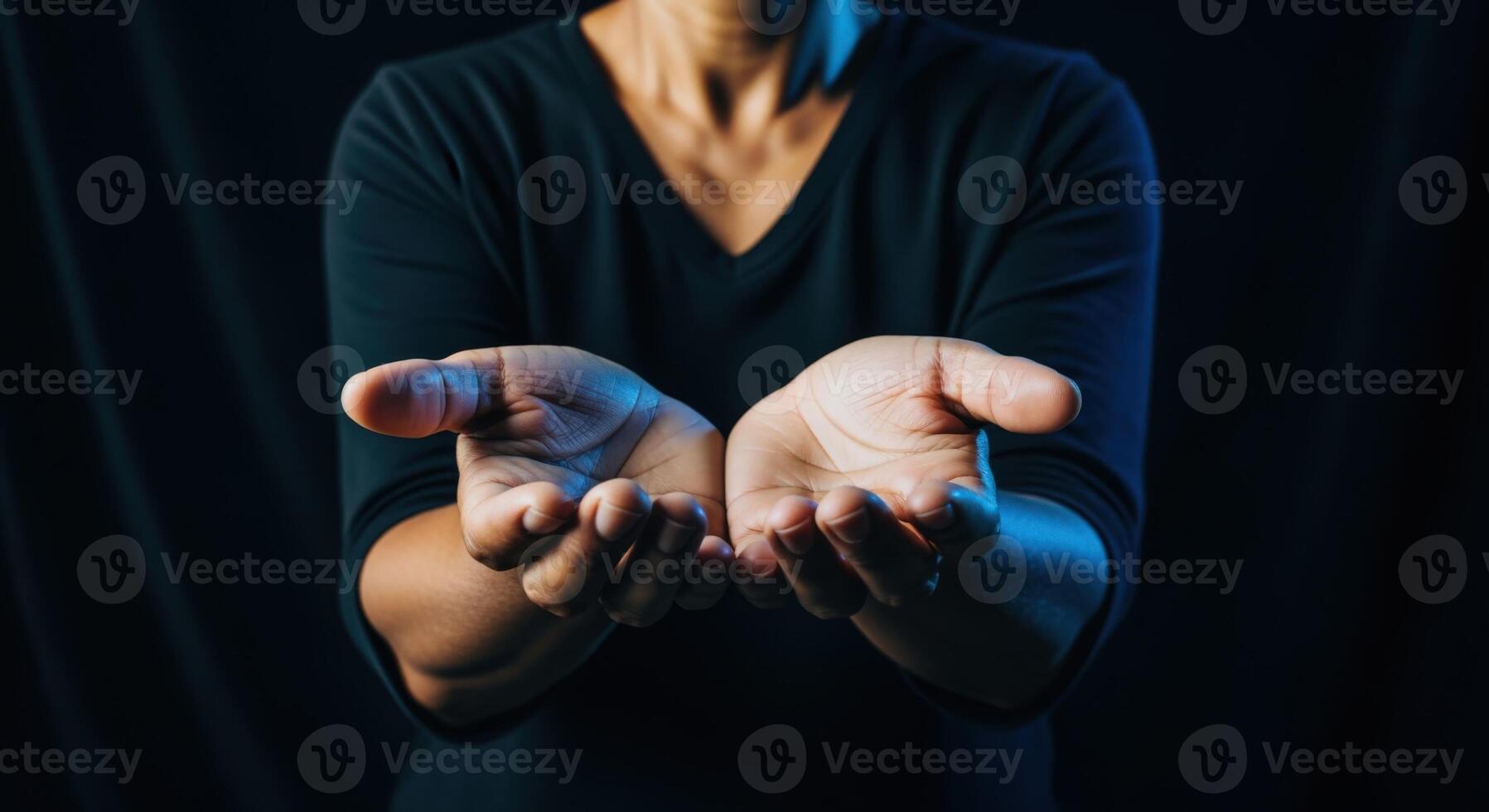Open Hands Offering A Womans Palms Up in Supplication, Donation, or Presentation Against Black Backdrop Pro Photo