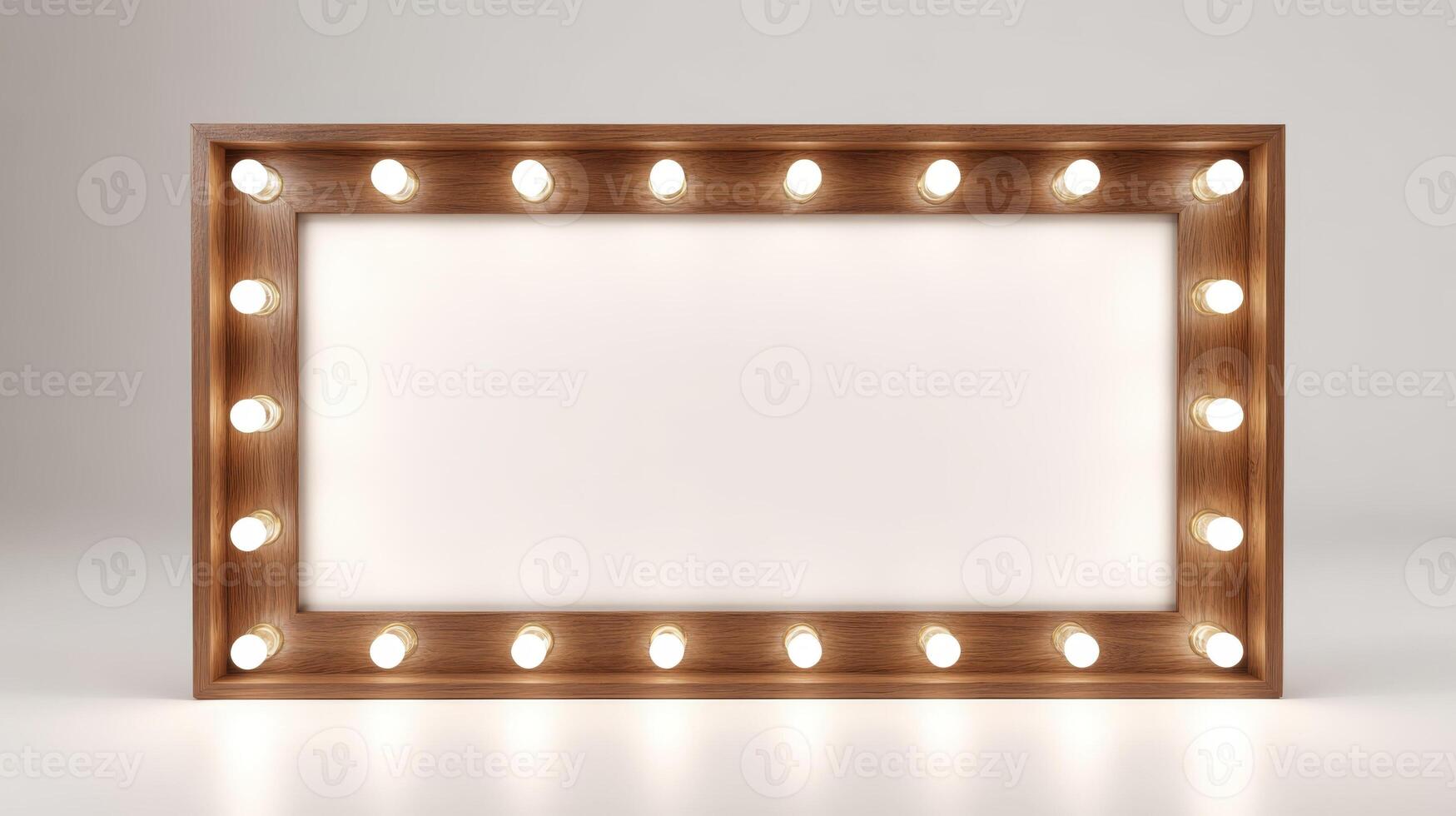 Illuminated Rectangular Frame with Glowing Bulbs and Empty White Space for Text or Image Pro Photo