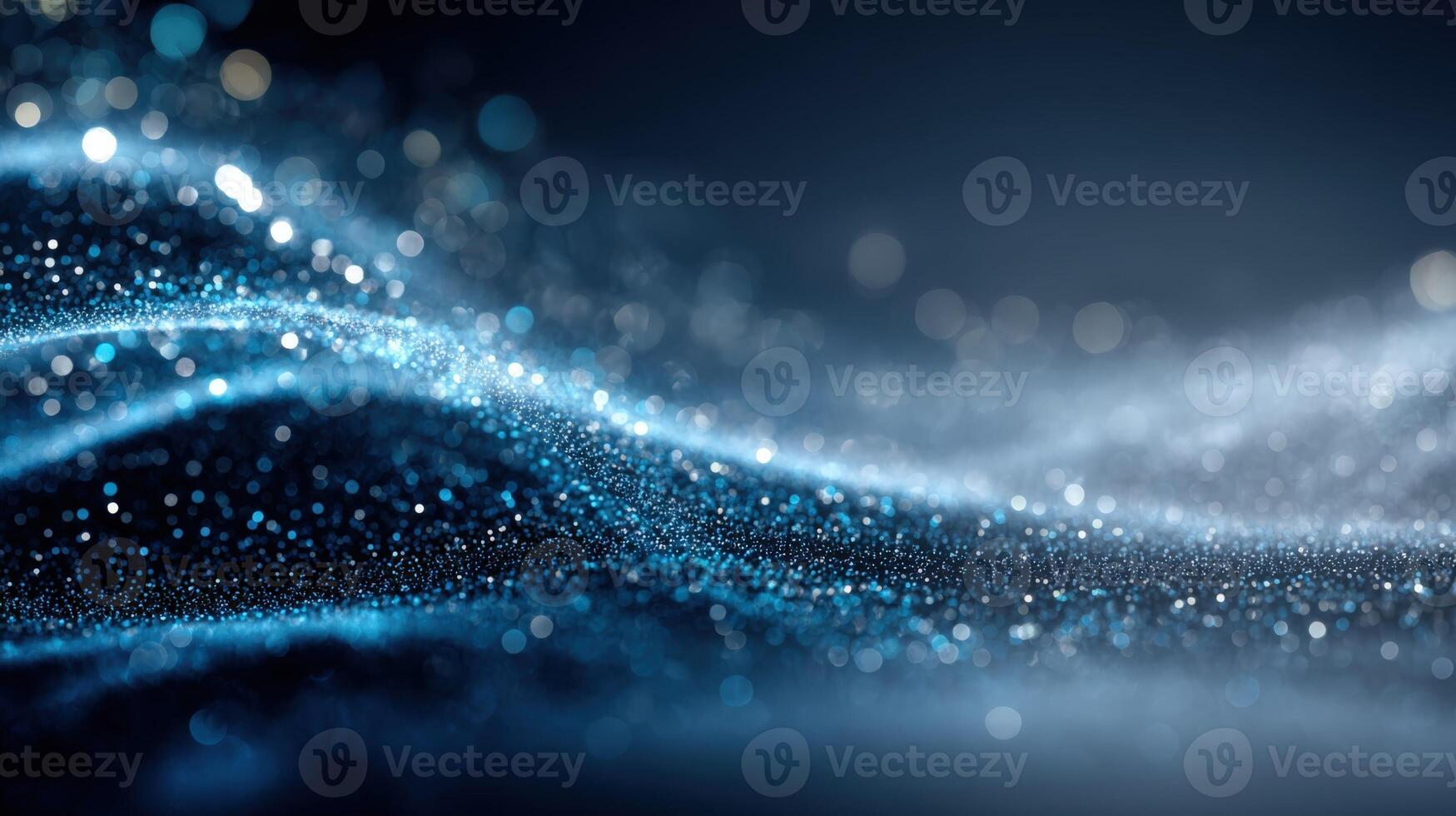 Abstract Blue Particle Wave Background with Bokeh Lights for Modern Technology and Science Concepts Pro Photo