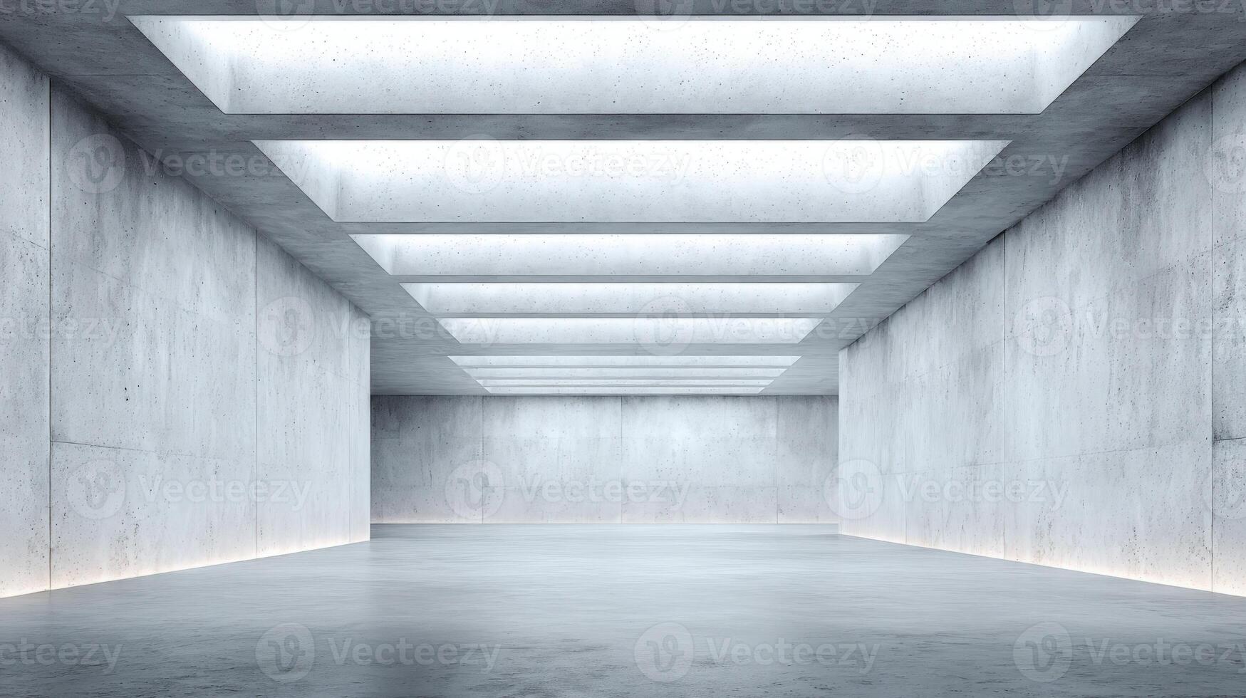 Abstract Concrete Hallway with Ceiling Lights in a Minimalist Style, Ideal for Architectural Renderings and Backgrounds Pro Photo