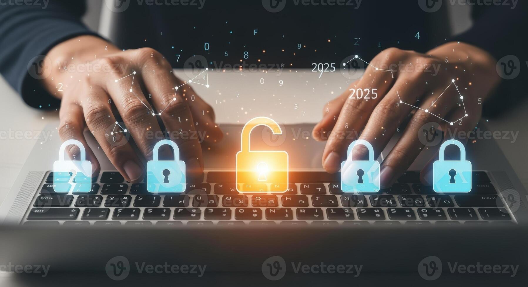 Cybersecurity Expert Unlocks Digital Data, Hands Typing on Laptop Keyboard, Illustrating Data Encryption and Protection Pro Photo