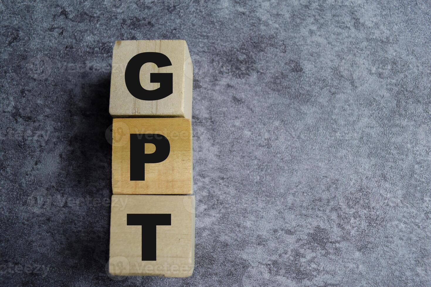 GPT - Generative Pre-Trained on stacked wooden cubes on the table. Business and finance concept Pro Photo