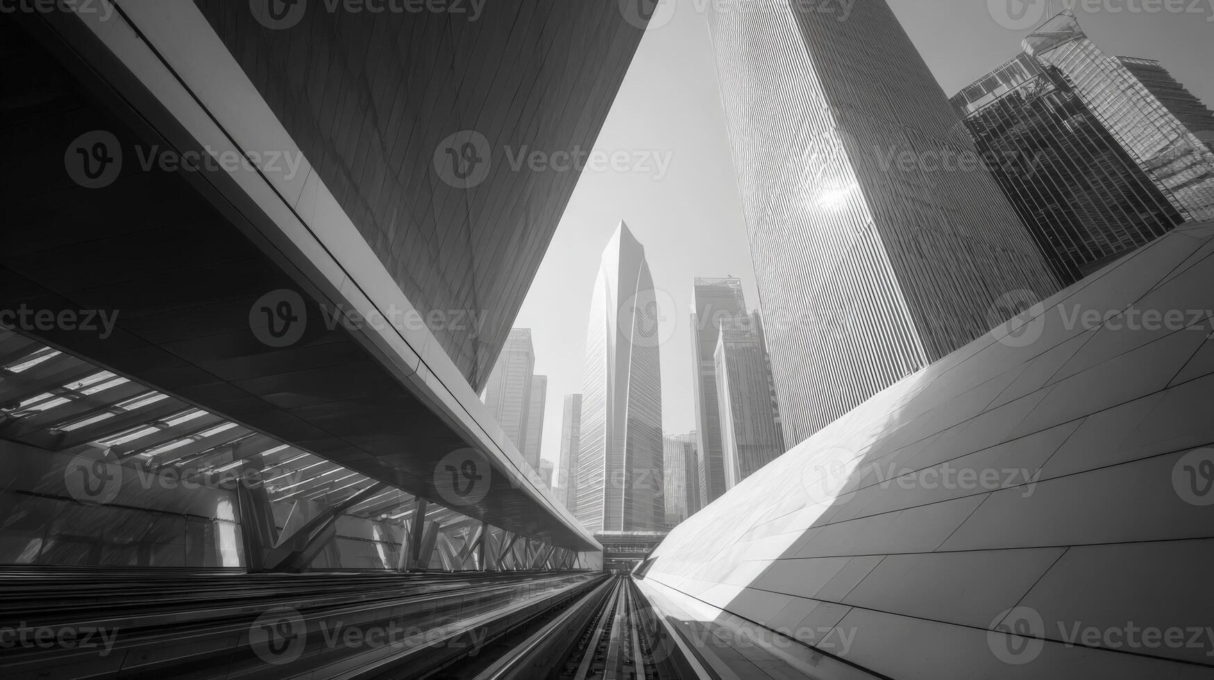 Modern Metropolis in Monochrome A Striking View of Urban Architecture and Infrastructure Convergence Pro Photo