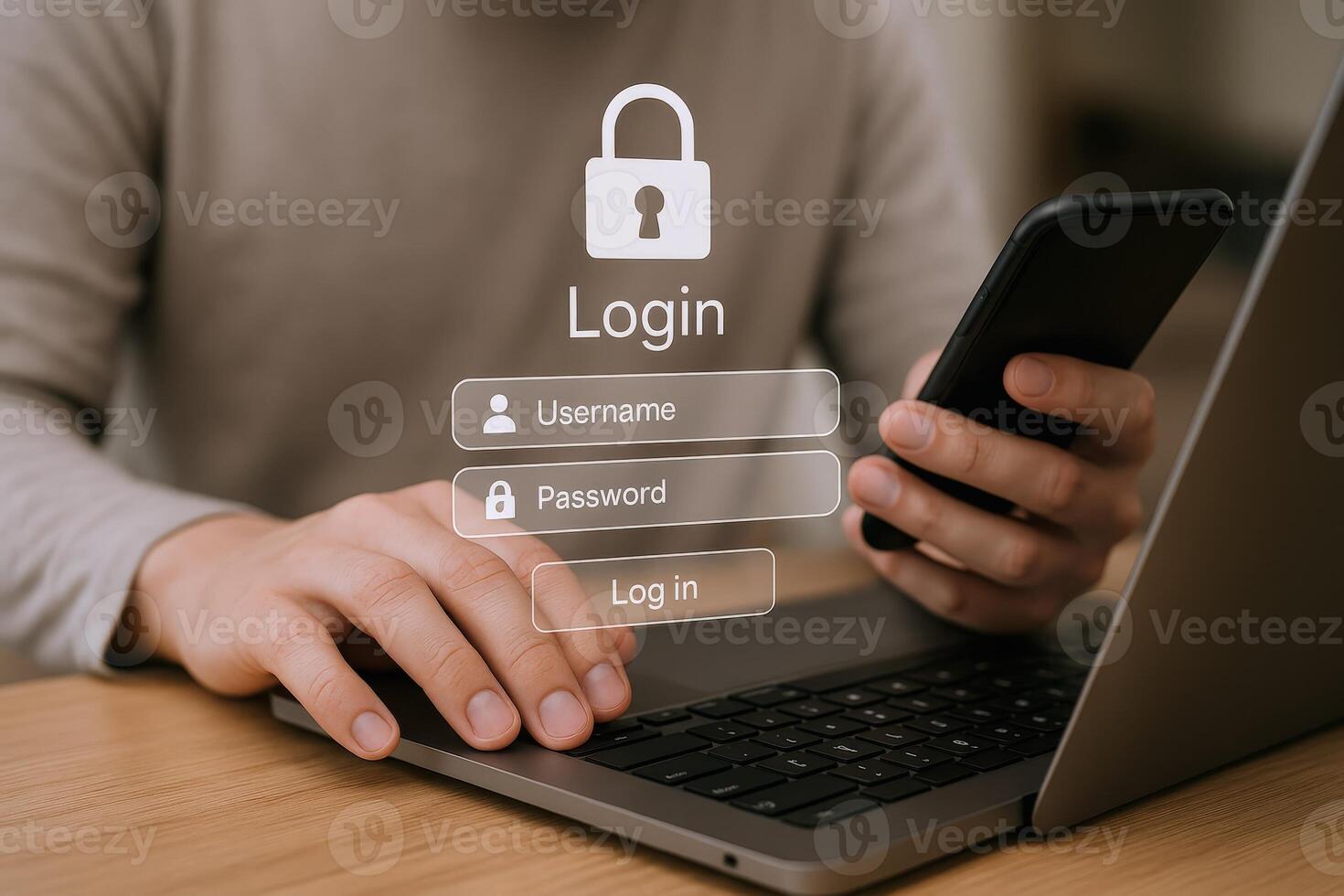 Secure Online Account Login with Two-Factor Authentication on Laptop and Mobile Device Pro Photo