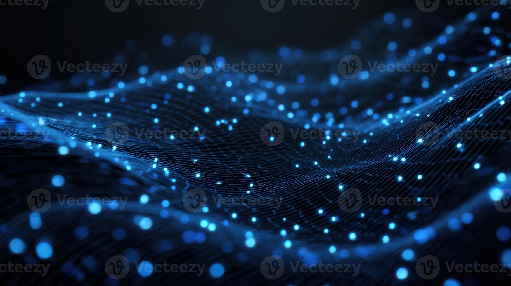 Abstract Blue Digital Wave Background with Glowing Particles for Technology and Science Concepts Pro Photo