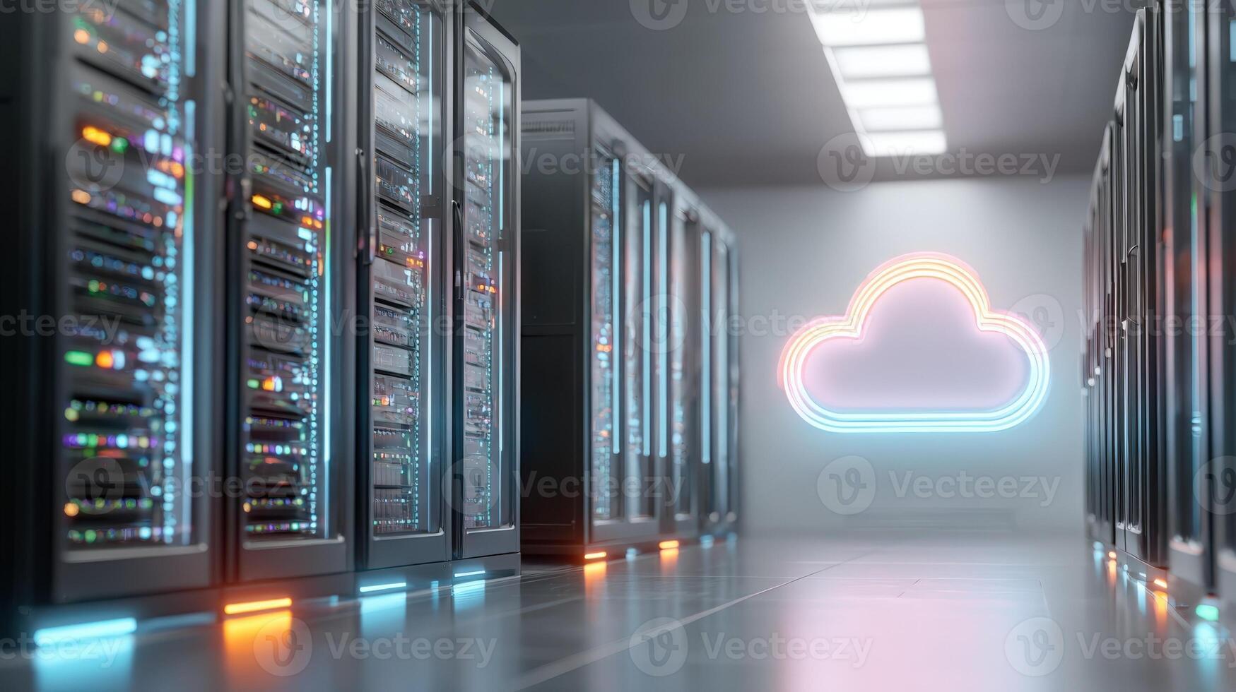 Server Room Data Center with Cloud Computing Symbol Representing Modern IT Infrastructure Pro Photo