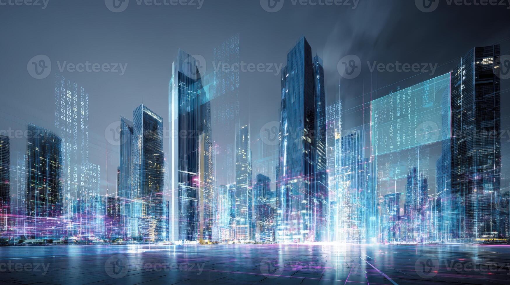 Futuristic Cityscape with Digital Overlay Modern Urban Innovation and Advanced Technological Infrastructure Visualization Pro Photo