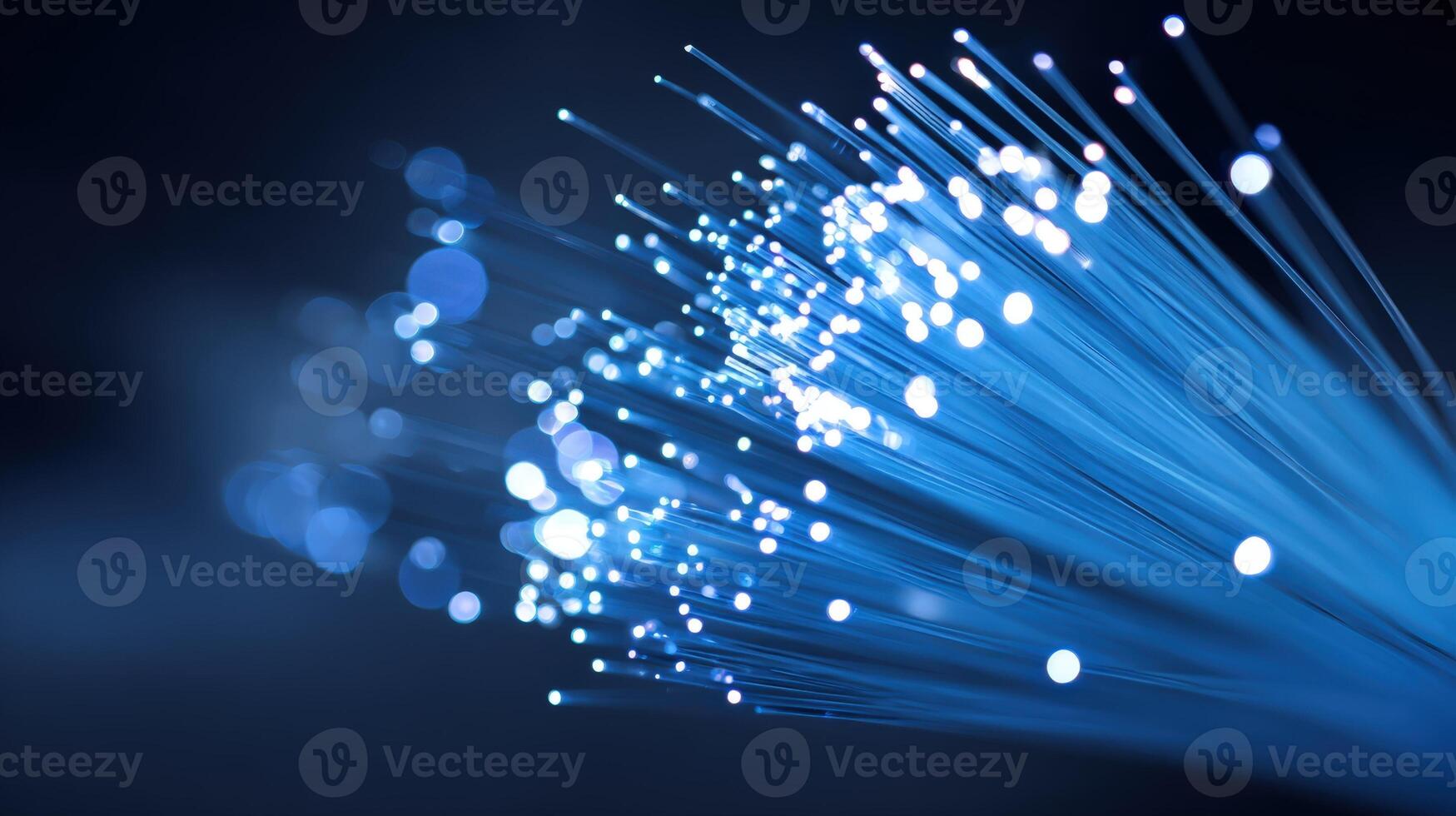 Illuminated Fiber Optic Cables Creating Abstract Blue Light Patterns for Modern Technology Concepts Pro Photo