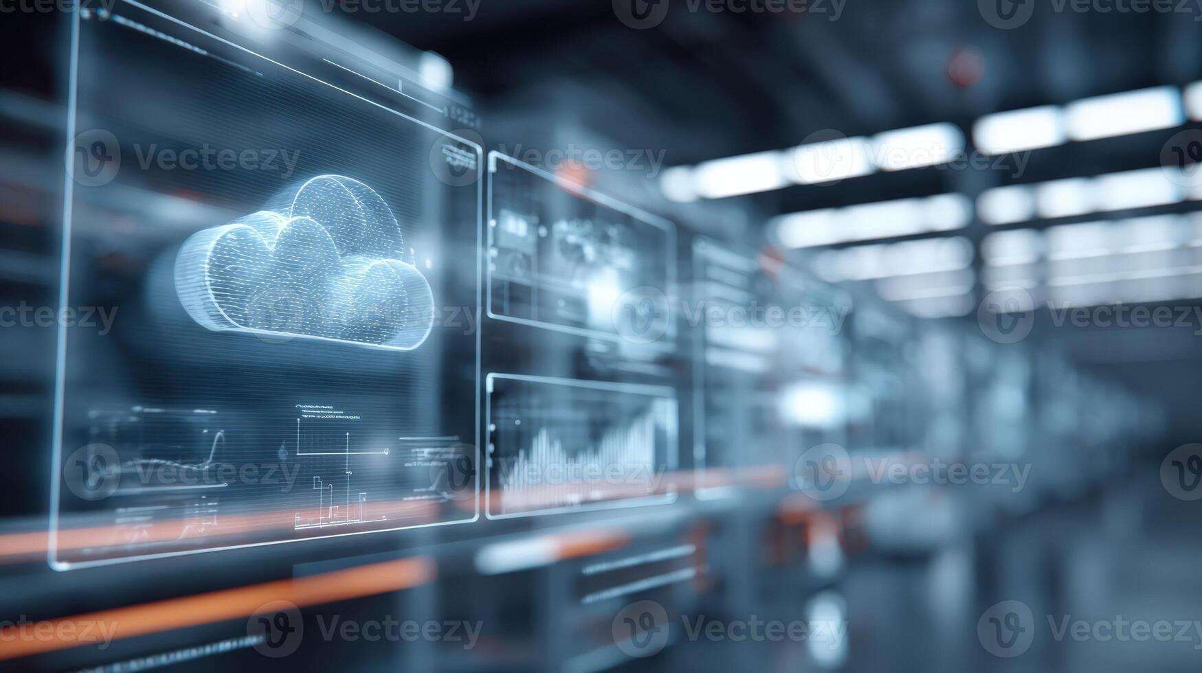 Futuristic Factory Displaying Cloud Computing Interface, Automation, and Data Visualization for Industrial Production and Manufacturing Pro Photo