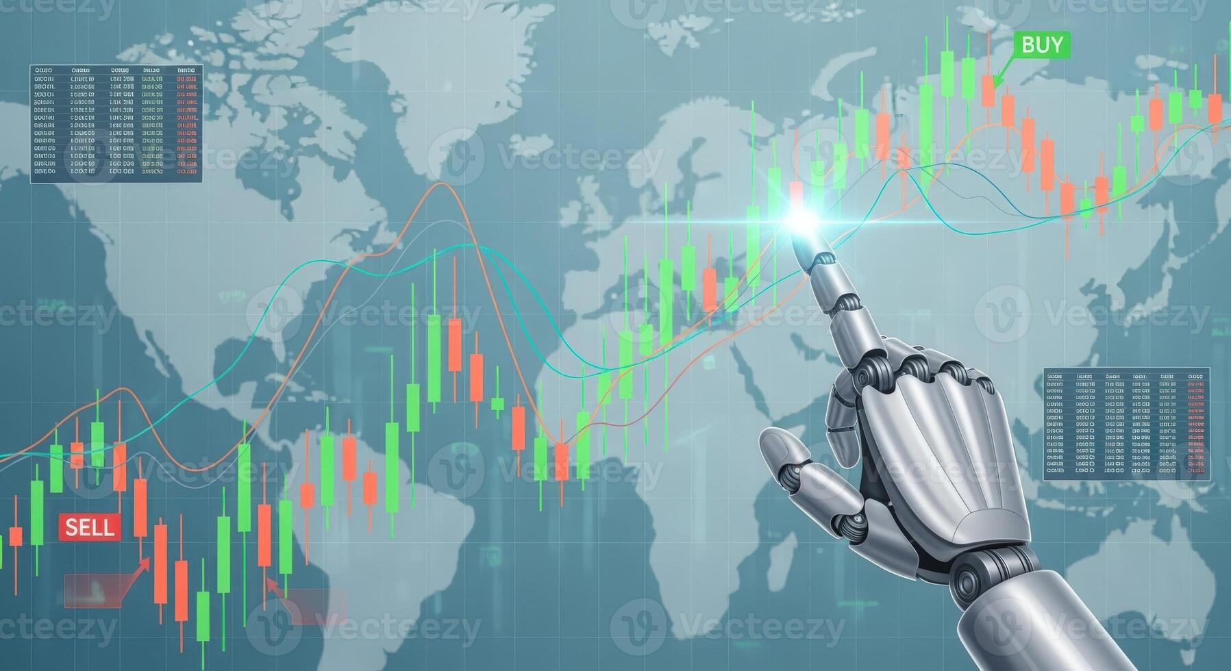 Robotic Arm Interacting with Global Stock Market Charts for Automated Trading Systems and Financial Analysis Pro Photo