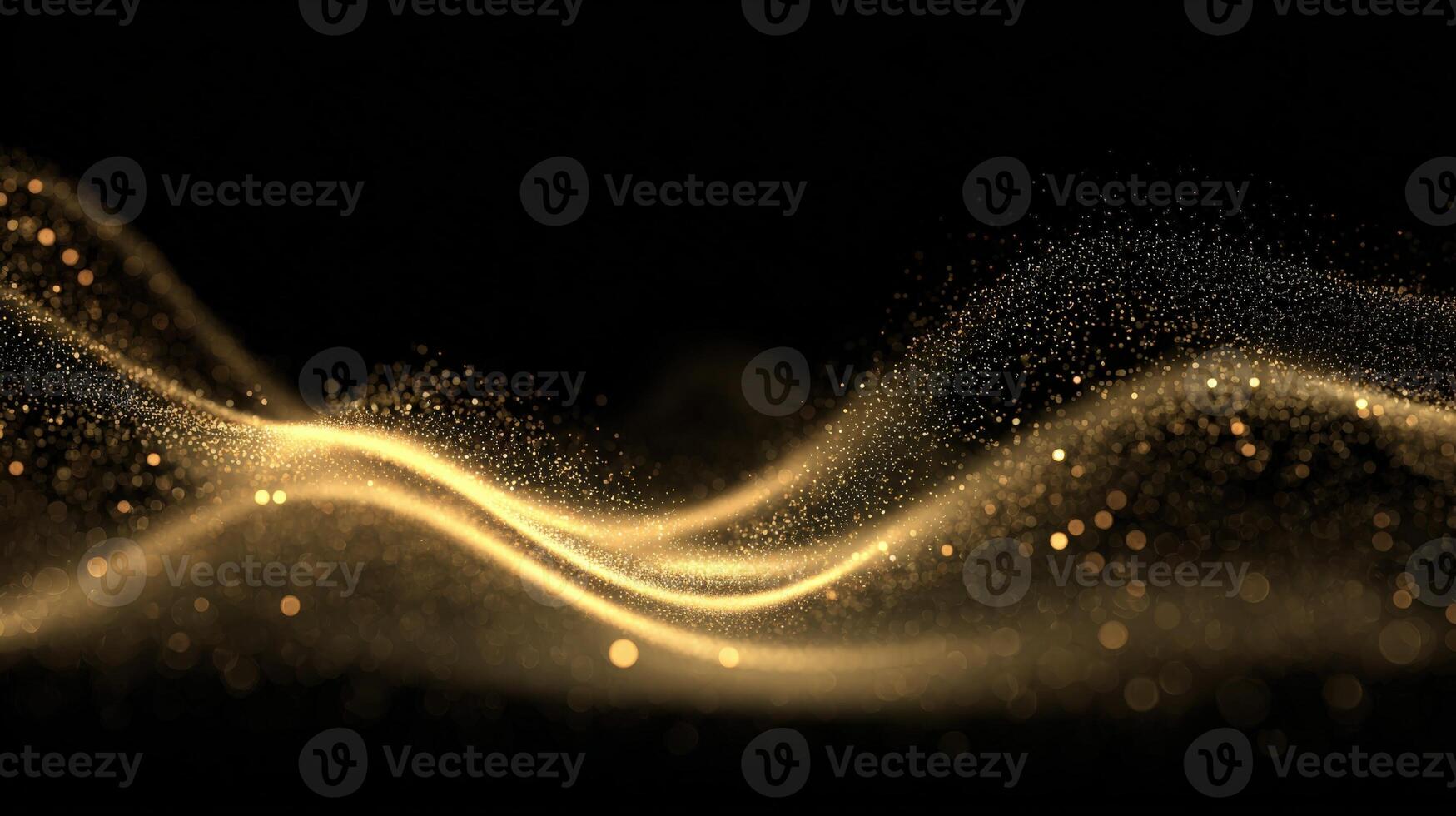 Elegant Golden Particle Wave on Black Background - Abstract Design with Glitter and Light Pro Photo