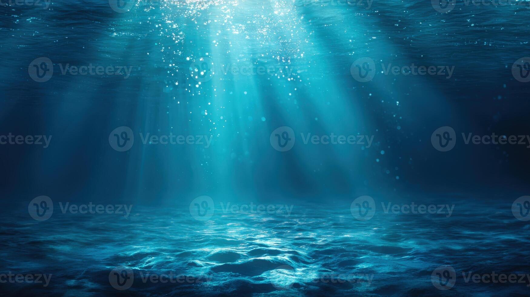 Underwater Sunlight Rays Illuminating the Ocean Floor, Creating a Serene and Mesmerizing Deep Sea Environment Pro Photo