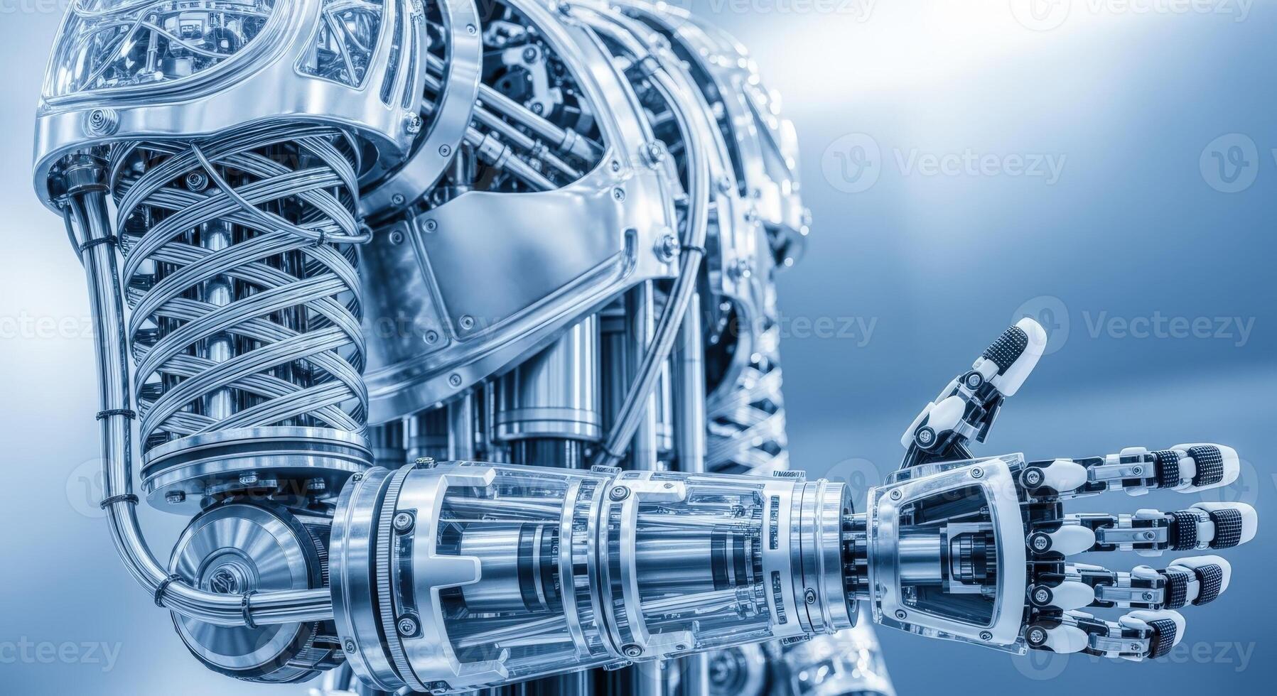 Advanced Robotic Body Structure Demonstrating Complex Engineering and Artificial Intelligence in Metallic Blue Tones Pro Photo