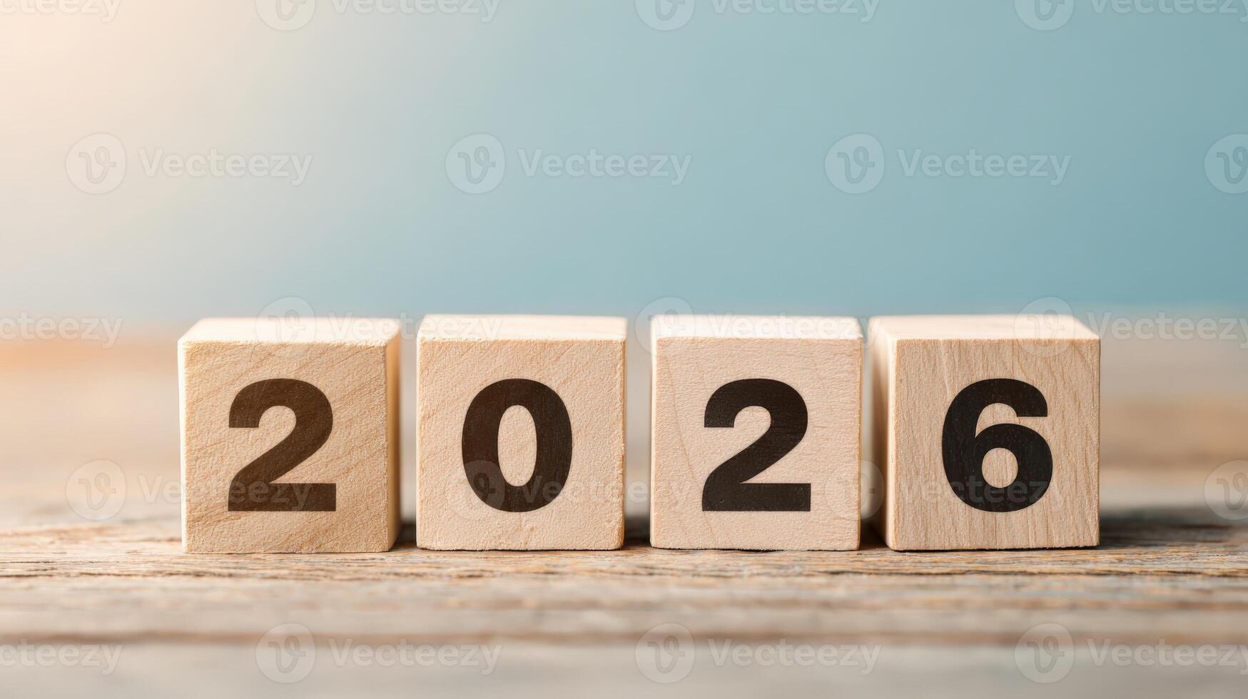 Wooden Blocks Displaying Year 2026 on Table, Representing Future Vision and Planning for the Upcoming Year Pro Photo