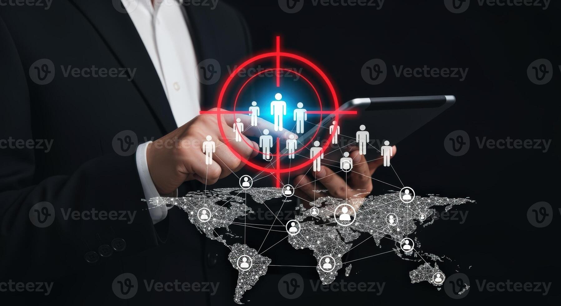 Targeting Global Audience with Digital Marketing on Tablet Customer Acquisition and Connection Concept Pro Photo
