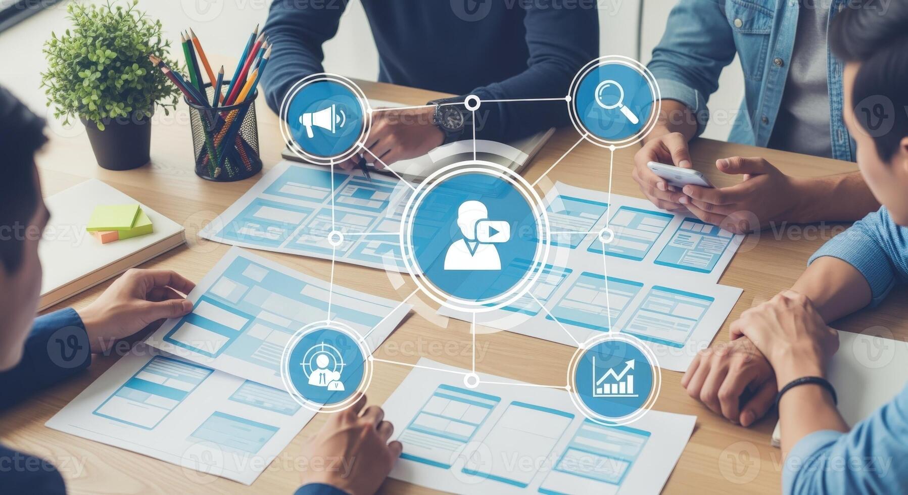 Collaborative Business Team Planning Digital Marketing Strategy for Online Web Application with User Interface Design Pro Photo