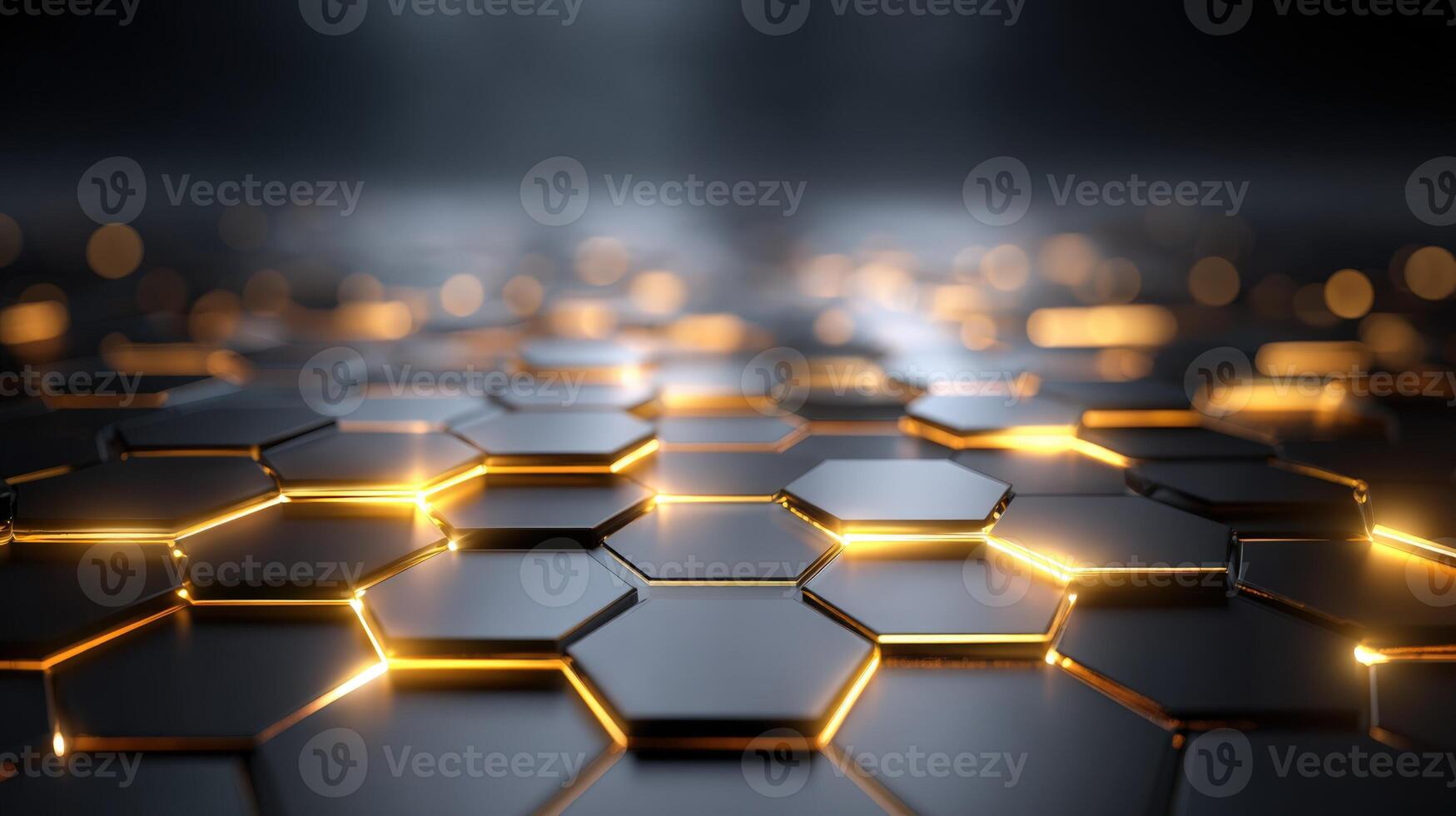 Abstract Hexagonal Technological Surface with Glowing Edges for Modern Backgrounds and Presentations Pro Photo