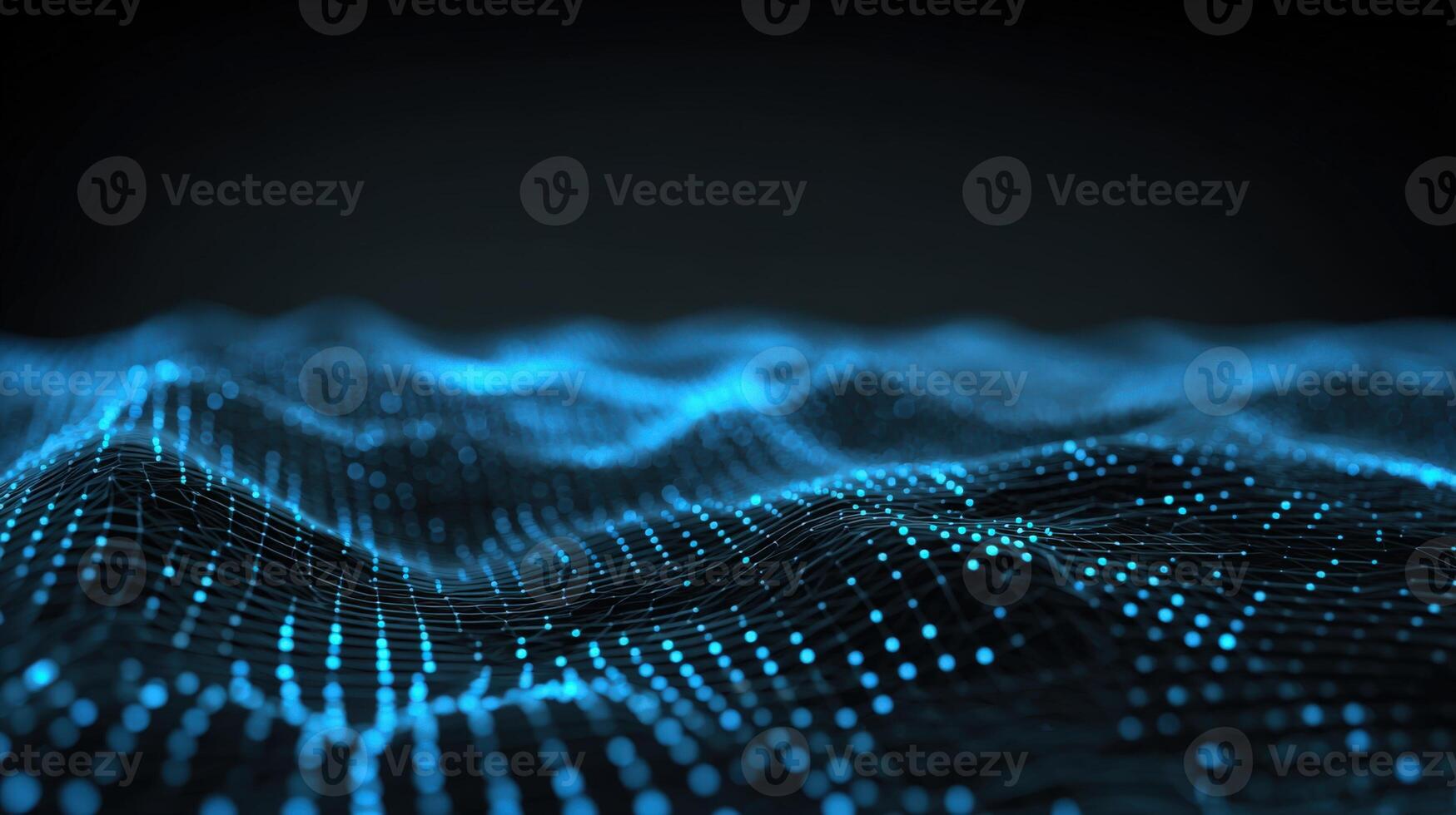 Abstract Technology Background with Glowing Blue Particles Forming a Wavy Grid - High Tech Visualization Pro Photo