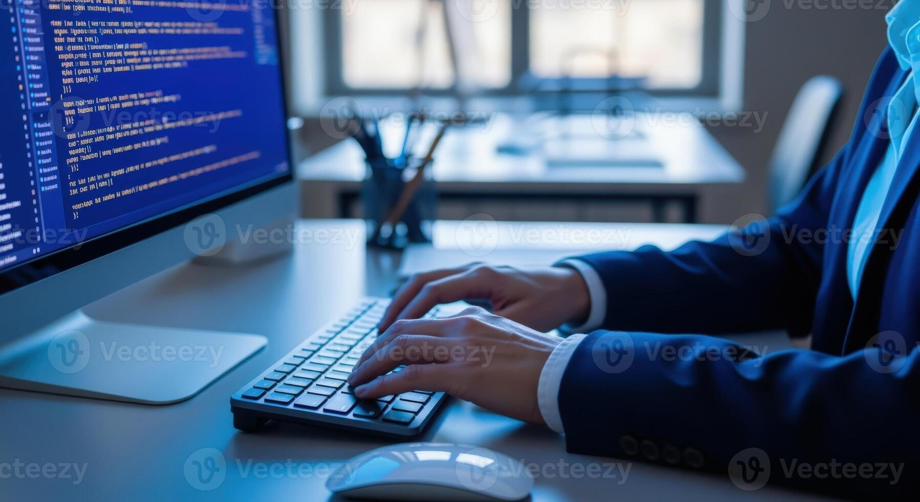 Developer Coding on Computer, Writing Software, IT Professional at Workstation, Typing Code Pro Photo
