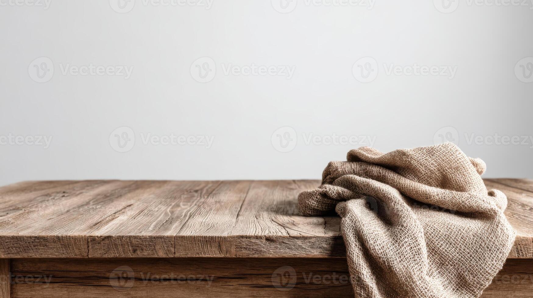 Rustic Wooden Table with Neutral Cloth Empty Space for Product Display and Mockup Pro Photo