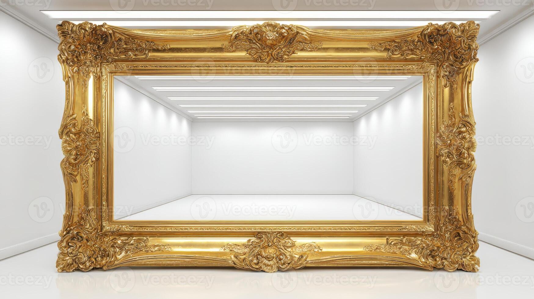 Ornate Gold Picture Frame Displaying Modern Empty Gallery Space, Providing Versatile Background for Artwork or Design Pro Photo