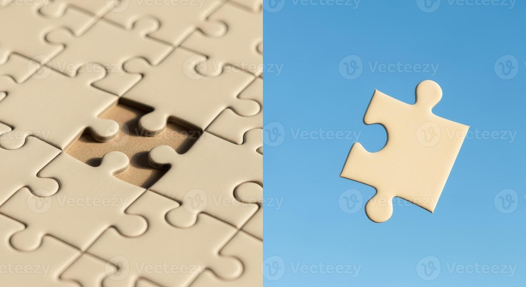 Conceptual Image of a Jigsaw Puzzle with a Missing Piece Representing Completion and Problem Solving on Blue Background Pro Photo
