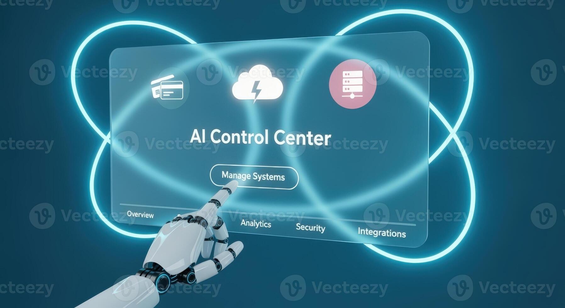 AI Control Center Interface with Robot Hand Touching Screen, Futuristic Technology for System Management Pro Photo