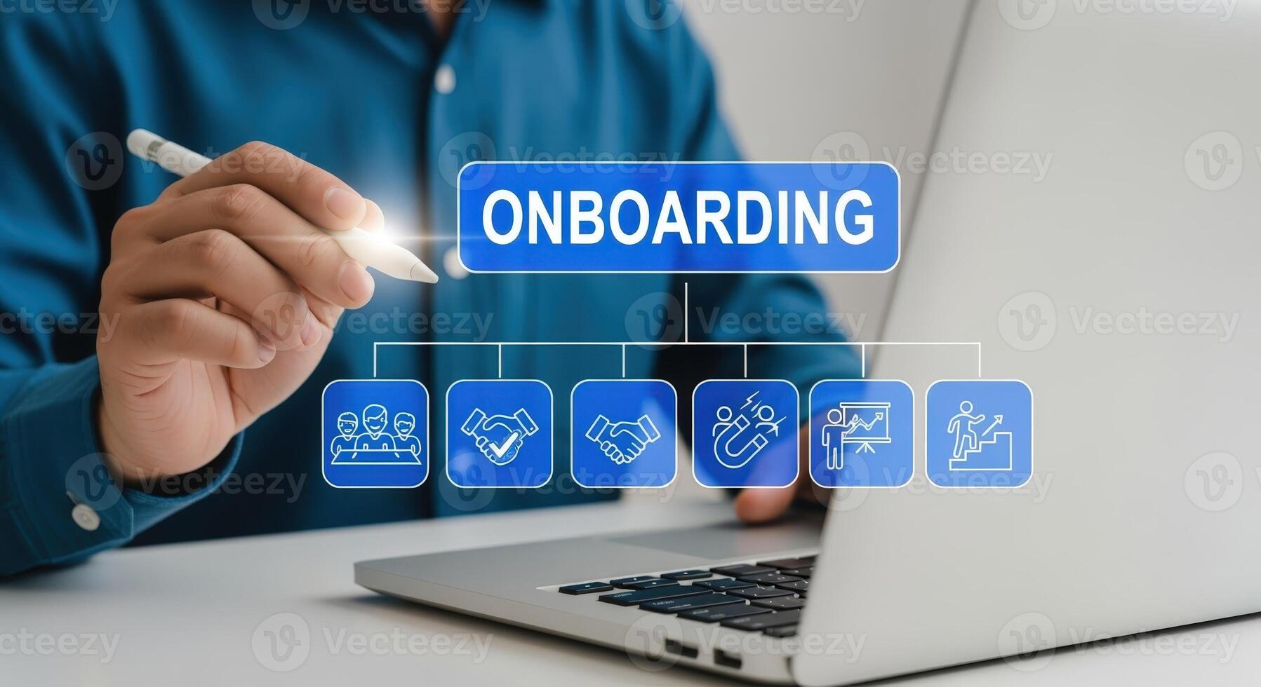 Digital Onboarding Process with Laptop and Stylus, Demonstrating New Employee Integration and Workflow Optimization Pro Photo