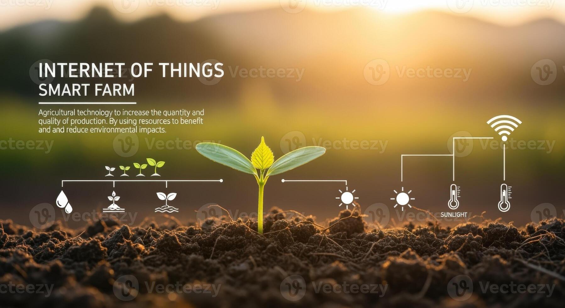 Smart Farming Concept Seedling Growth with Internet of Things Technology Integration in Agriculture Pro Photo