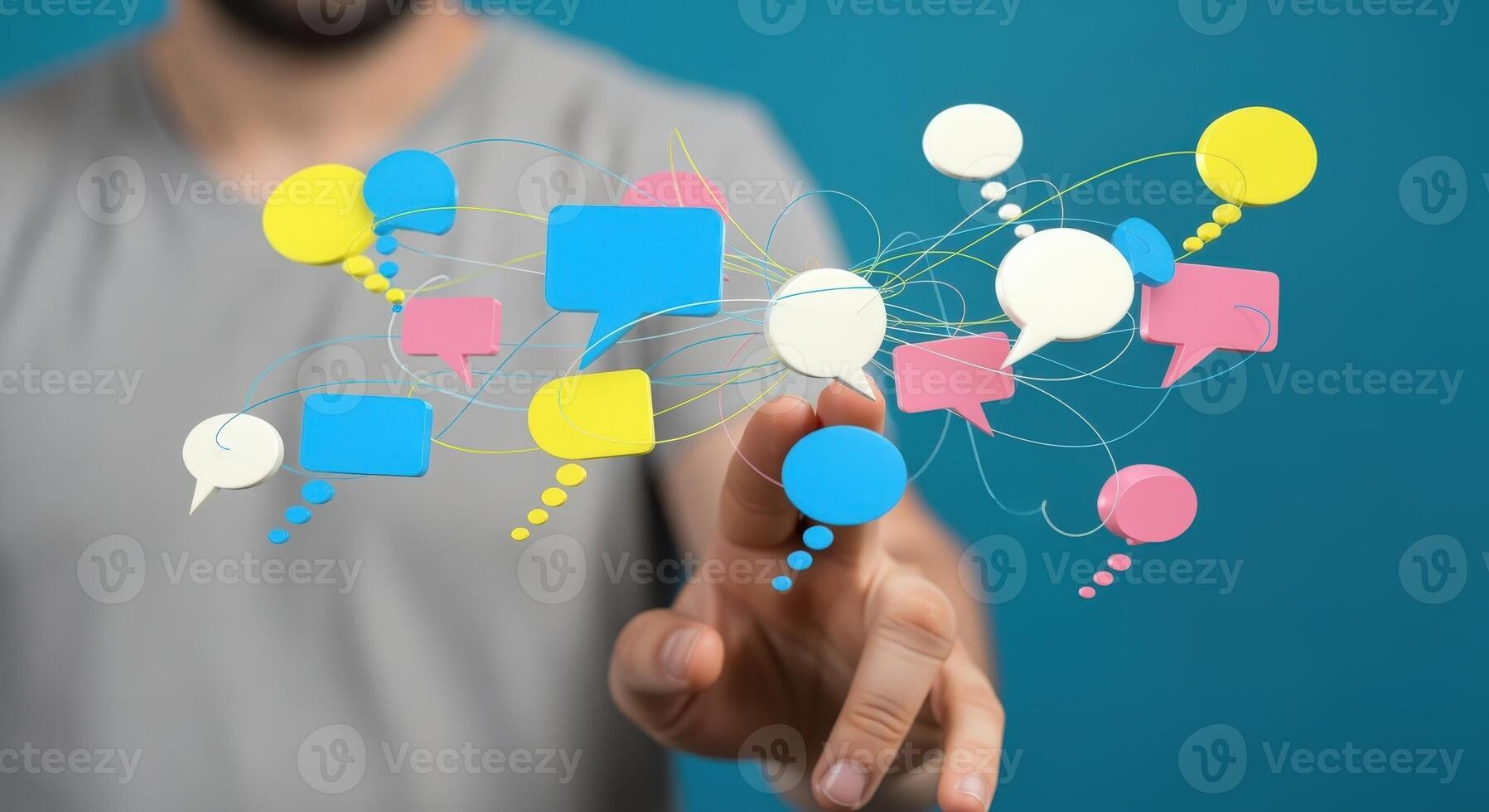 Digital Communication Network Hand Touching Virtual Speech Bubbles Representing Connection and Social Interaction Pro Photo