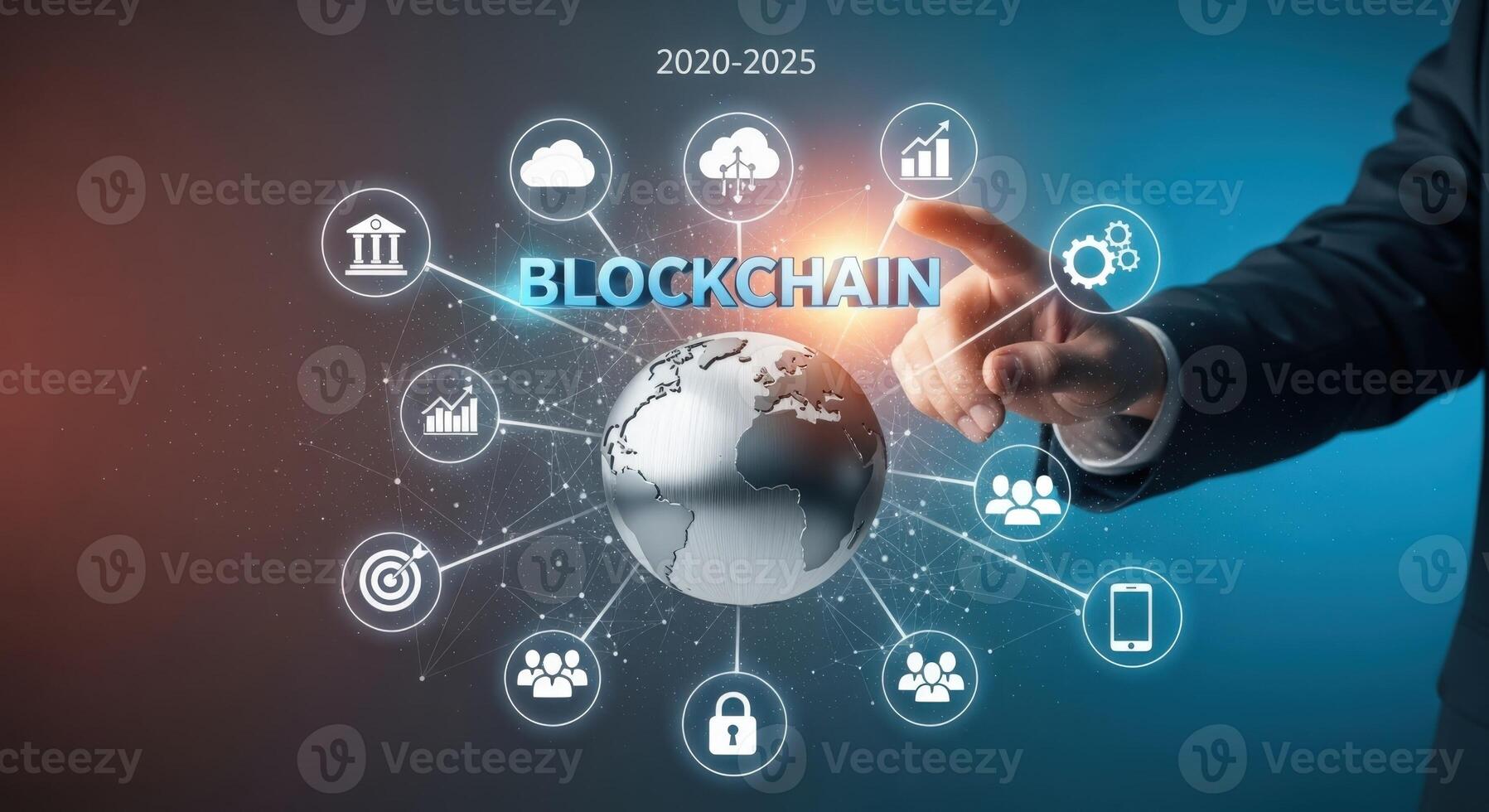 Blockchain Technology Conceptual Illustration Global Digital Network, Cryptocurrency, and Data Security for the Future Pro Photo