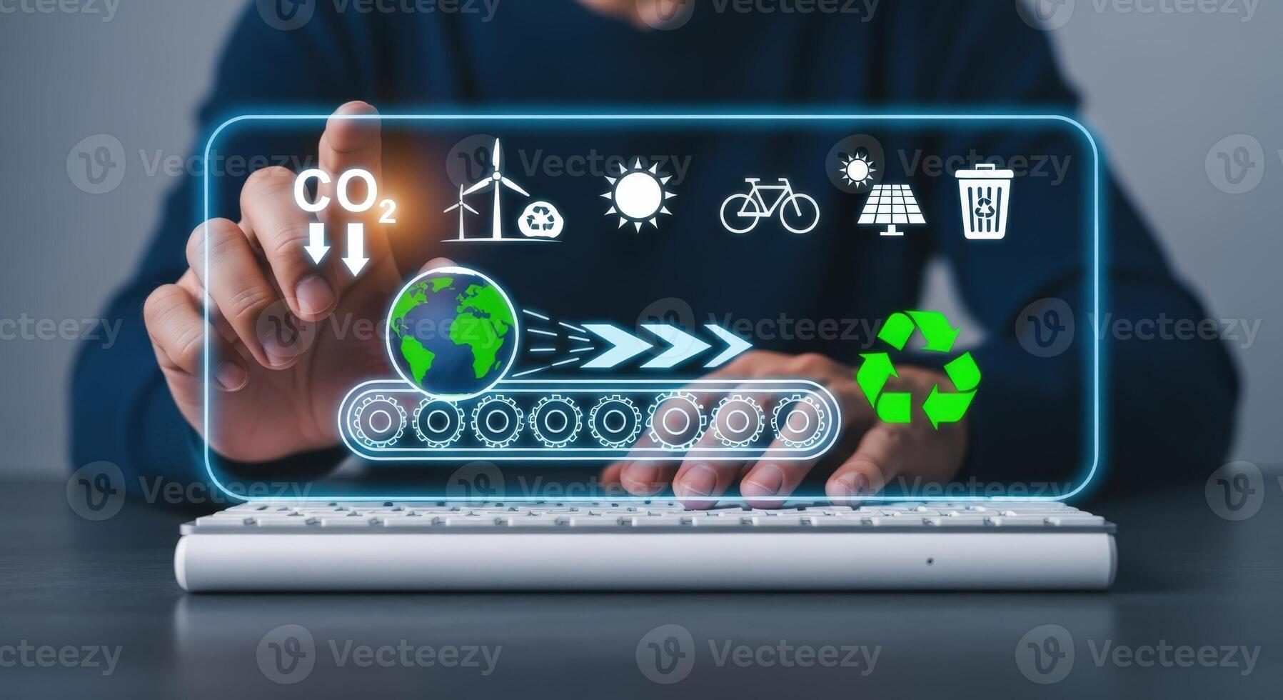 Sustainable Technology Interface Displaying Ecology and Green Energy Concepts, Representing a Commitment to a Cleaner Environment Pro Photo